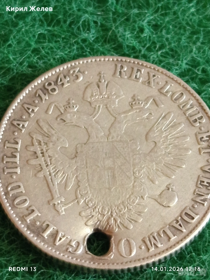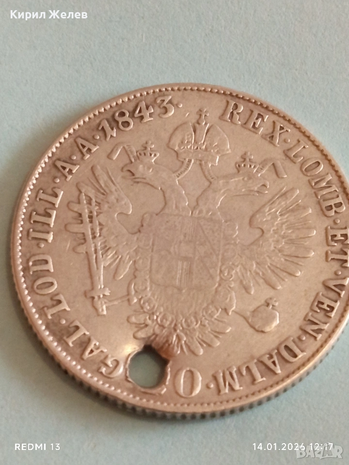 Сребърна монета 20 кройцера 1843г. Фердинанд първи Австрия за КОЛЕКЦИЯ 52950 → Обява 53094935