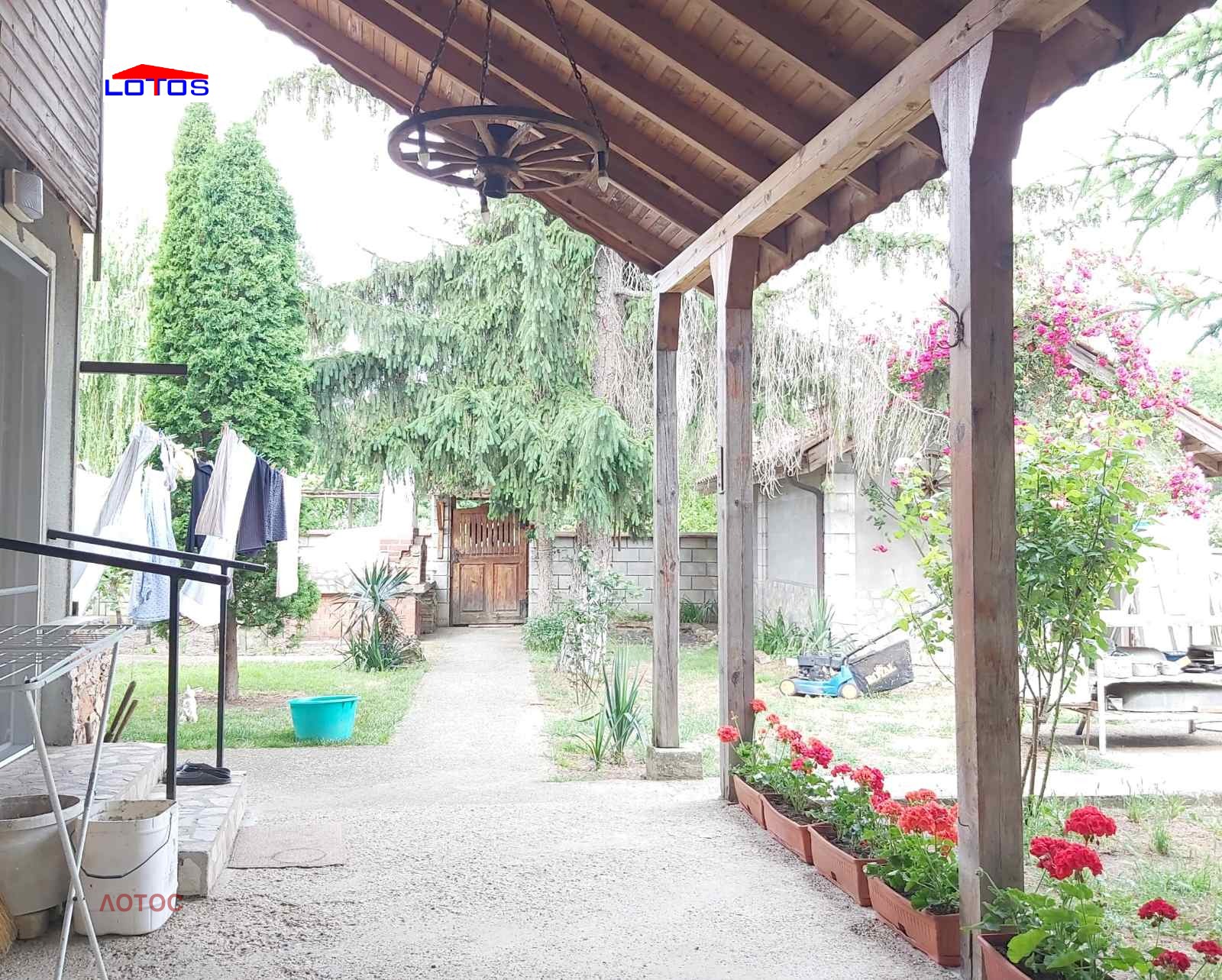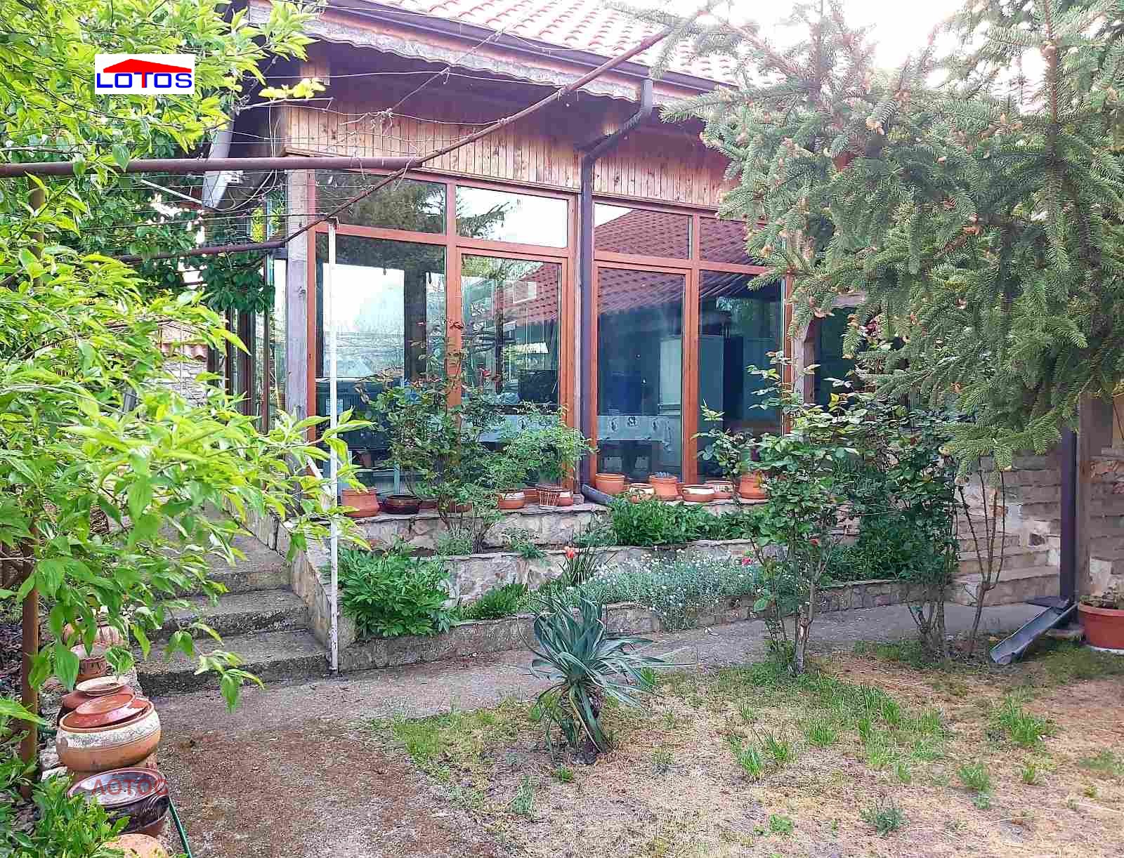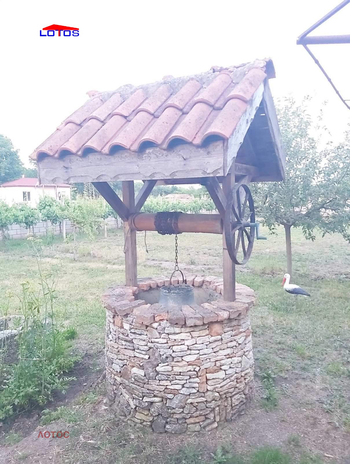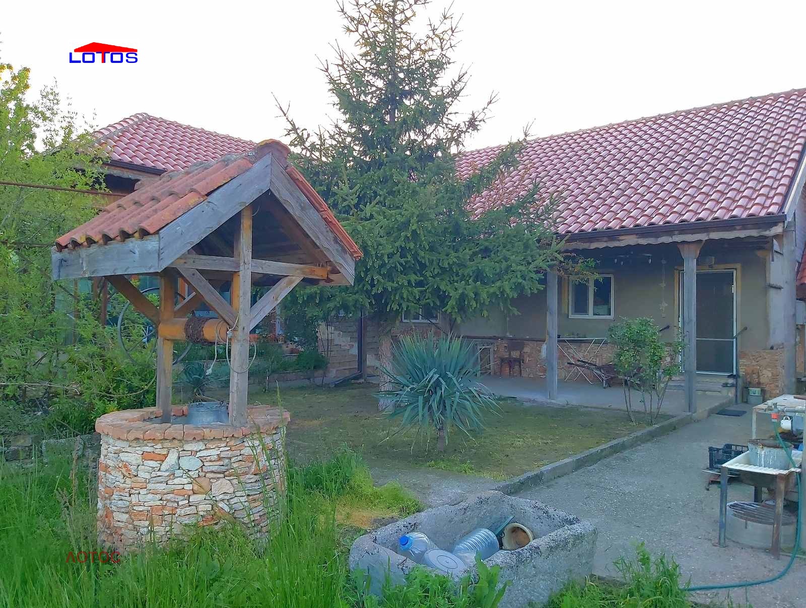 на дърва и бойлер със серпентина от парното. Към имота има изградена лятна кухня и зимна градина. Стопански постройки, гараж.. Дворно място--2780 кв.м., засято с 65 бр. овощни дръвчета, лозе със сортове - мерло, сира, памит, совиньон блан и асми - със сортове - велика, хамбурски мискет, перла, брестовица. В двора има обособена площ с капково напояване за отглеждане на зеленчуци. Селото се намира на 10 мин. с кола от плажовете на с. Дуранкулак.