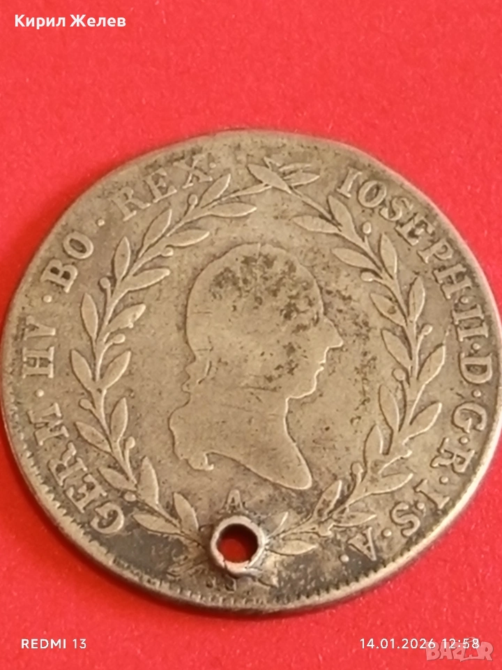 Сребърна монета 20 кройцера 1787г. Йозеф втори Австрия Виена за КОЛЕКЦИЯ 52963 → Обява 53095440