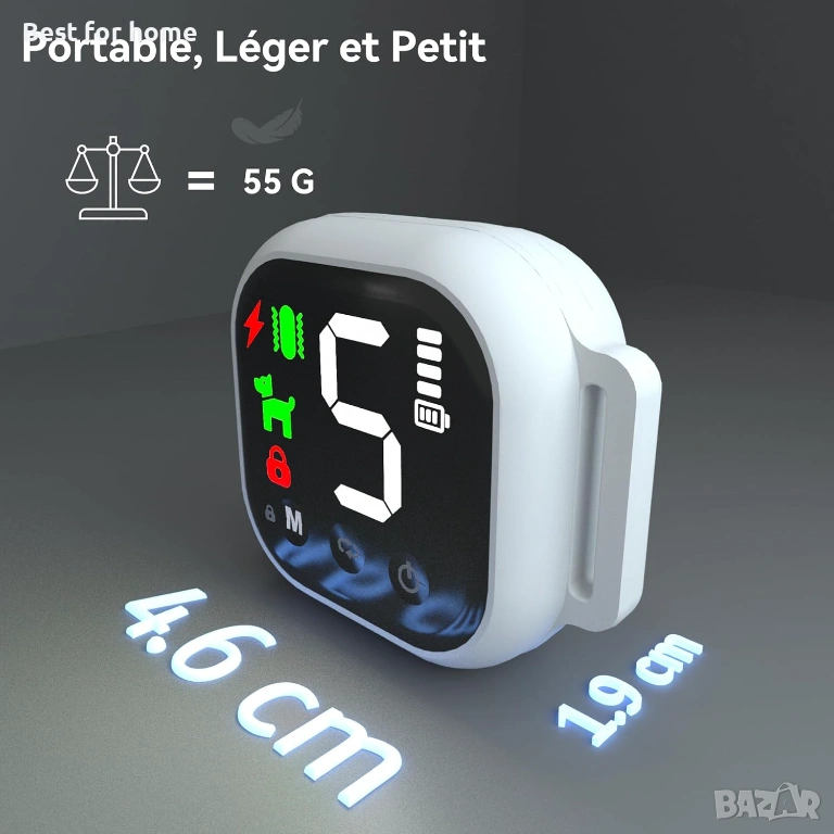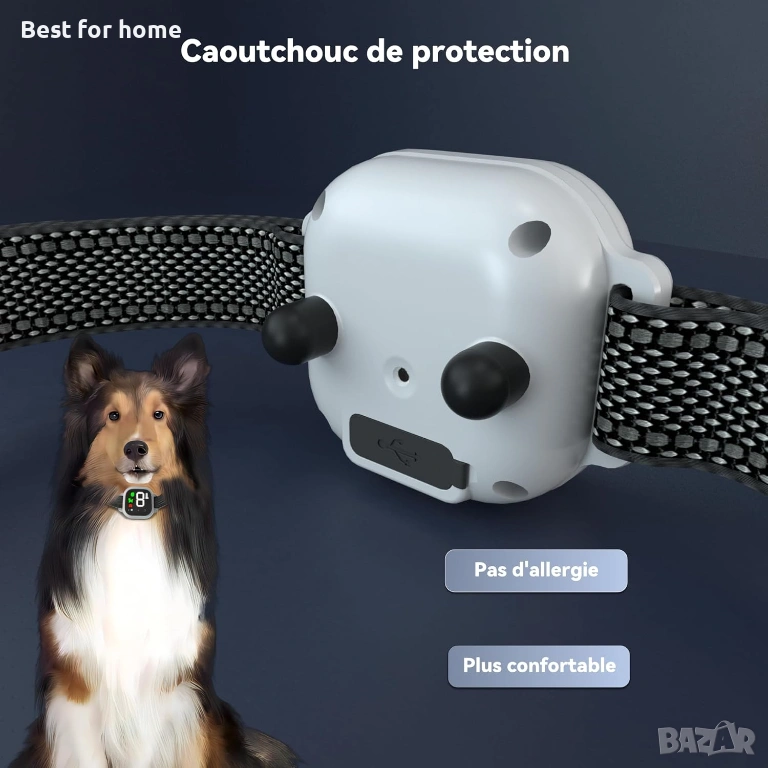 Преносим, лек и малък: С тегло само 55 г, нашийникът е лек и кучето ви дори няма да забележи присъствието му. Светлоотразителната лента с дължина 62 см е идеална за кучета над 3 кг. Цветният LED екран ви позволява да следите нивото, активирания режим и състоянието на батерията.