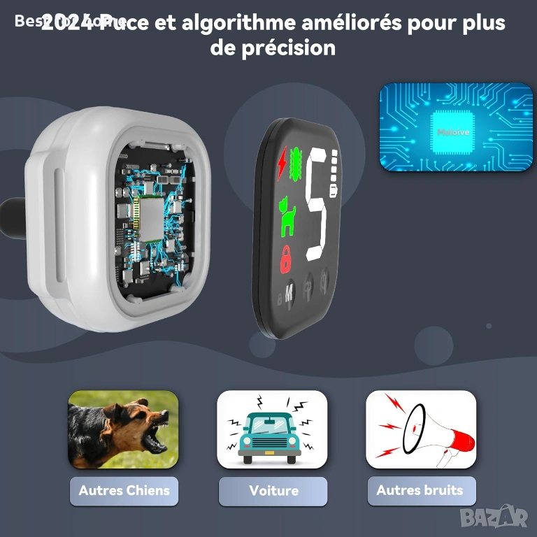 Интелигентен чип за разпознаване на лай: Сензорът за задействане, вграден в този нашийник, ще засече всички шумове, след което ще филтрира само лая, за да задейства (честоти на лай: 1000-2000kHZ, 80-90dB). Нашийникът ще се активира само когато кучето ви лае, което ще ви позволи да го дресирате правилно.