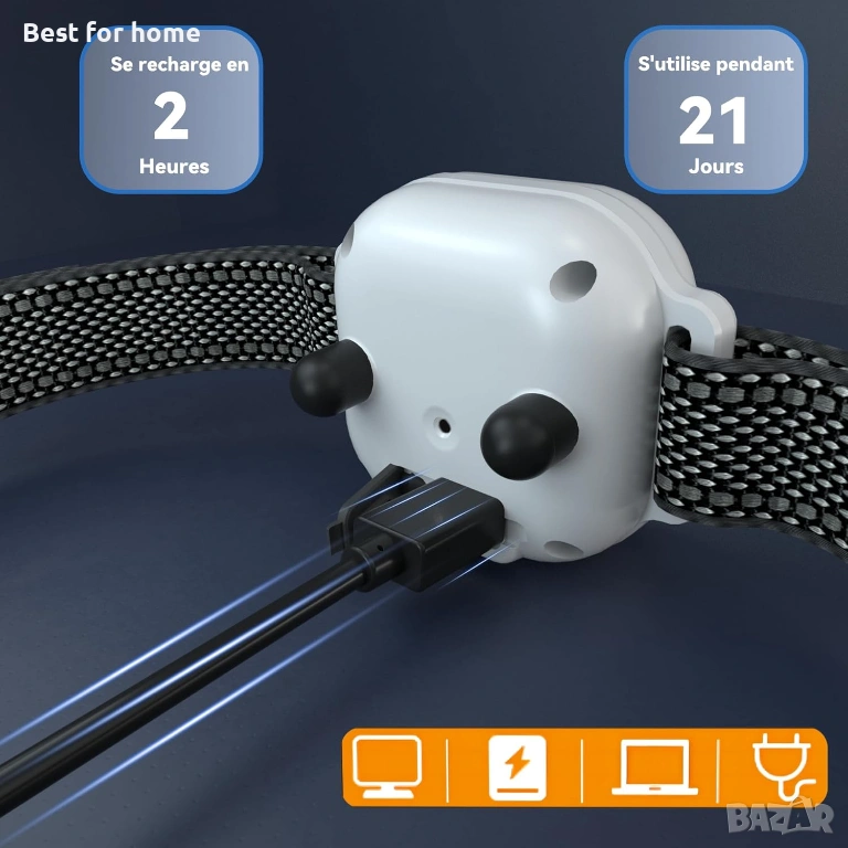 Акумулаторна и водоустойчива по IP67: Вградената акумулаторна литиева батерия е с голям капацитет и се зарежда напълно само за 2 часа, което ѝ осигурява до 21 дни употреба. Зареждането се извършва през USB порт. Нашийникът е IP67, което го прави устойчив на дъжд, пръски вода и прах.