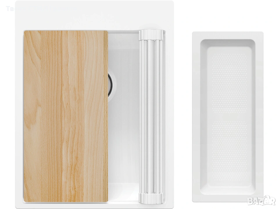 Бял СПРИ СКРОЛА – ВСИЧКО ЗА КУХНЯТА ГОТОВО Мивка + смесител + сифон + дозатор + препарати