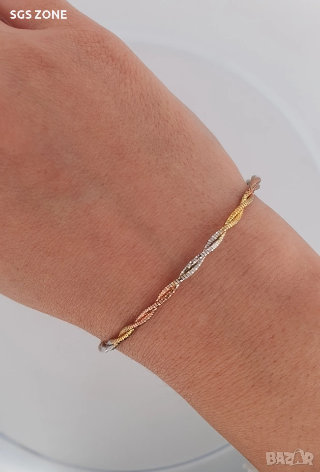 Нежна сребърна гривна от Италия с позлата и родиево покритие. Размер 16 см. Още снимки и видеа на продукта в Instagram и Facebook sgs.zone, уебсайт sgs.zone. Можем да изпратим допълнителна информация чрез Viber. Изпращане Speedy и Эконт. Шоурум в София, Дондуков, 53. Всички продукти са със сертификати и подаръчна кутия. Продукти имат допълнителни български маркировки