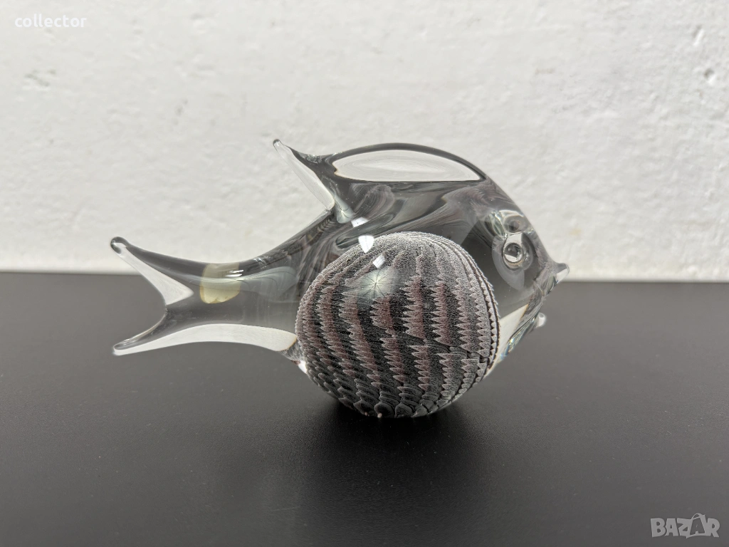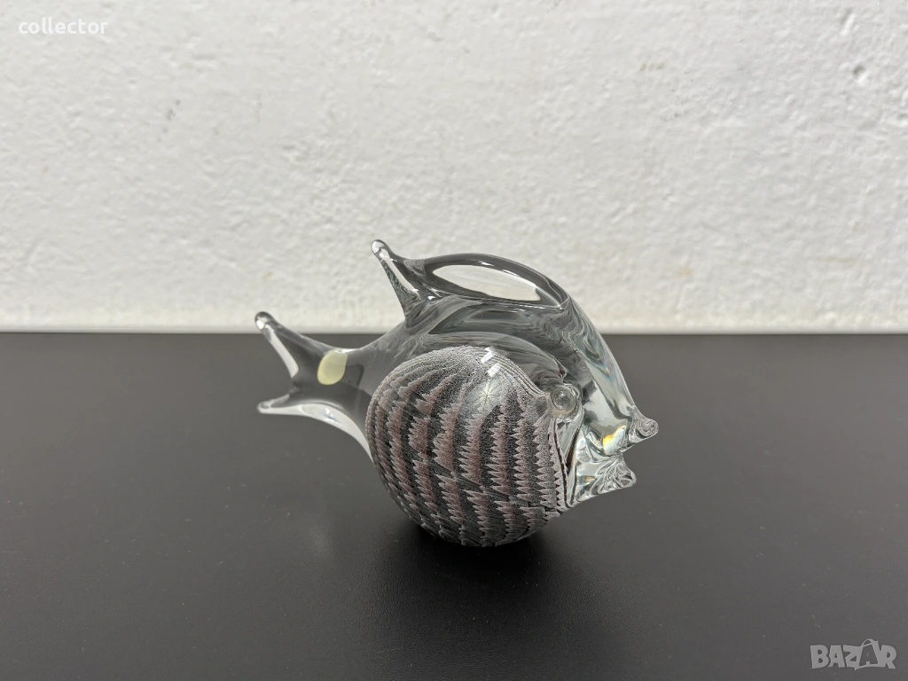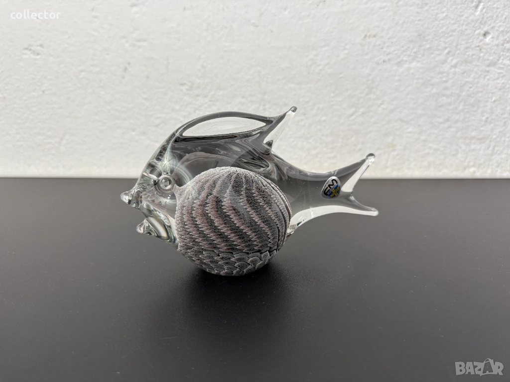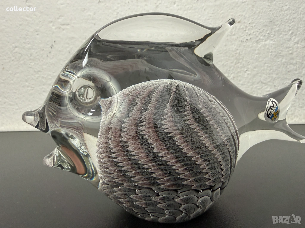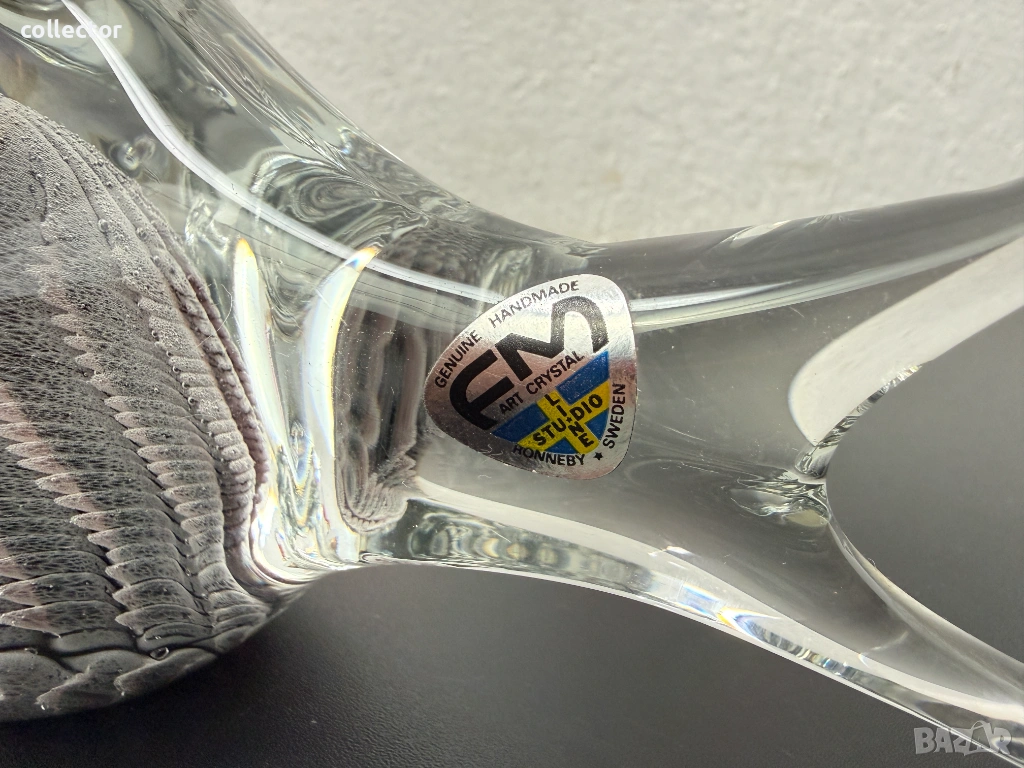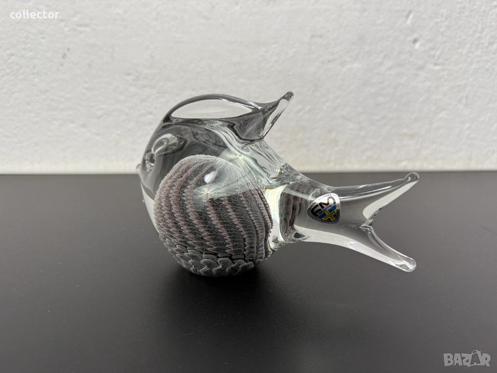 Скулптура на риба от стъкло, произведена от шведската компания FM Konstglas (по-късно Marcolin Art Crystal) от Ронеби, Швеция. Братята Марколин, които са учили техники за работа със стъкло в известните студиа на остров Мурано, Италия.