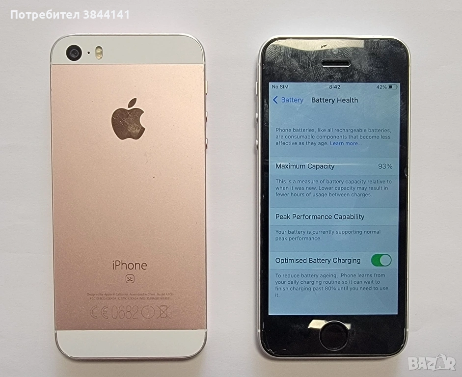 Два броя Айфон Se( на базата на 5-ца), IOS 15.8.5, всички съвременни приложения работят. 93% на сивия, 82% на розовия. 195лв двата, 110лв/бр.