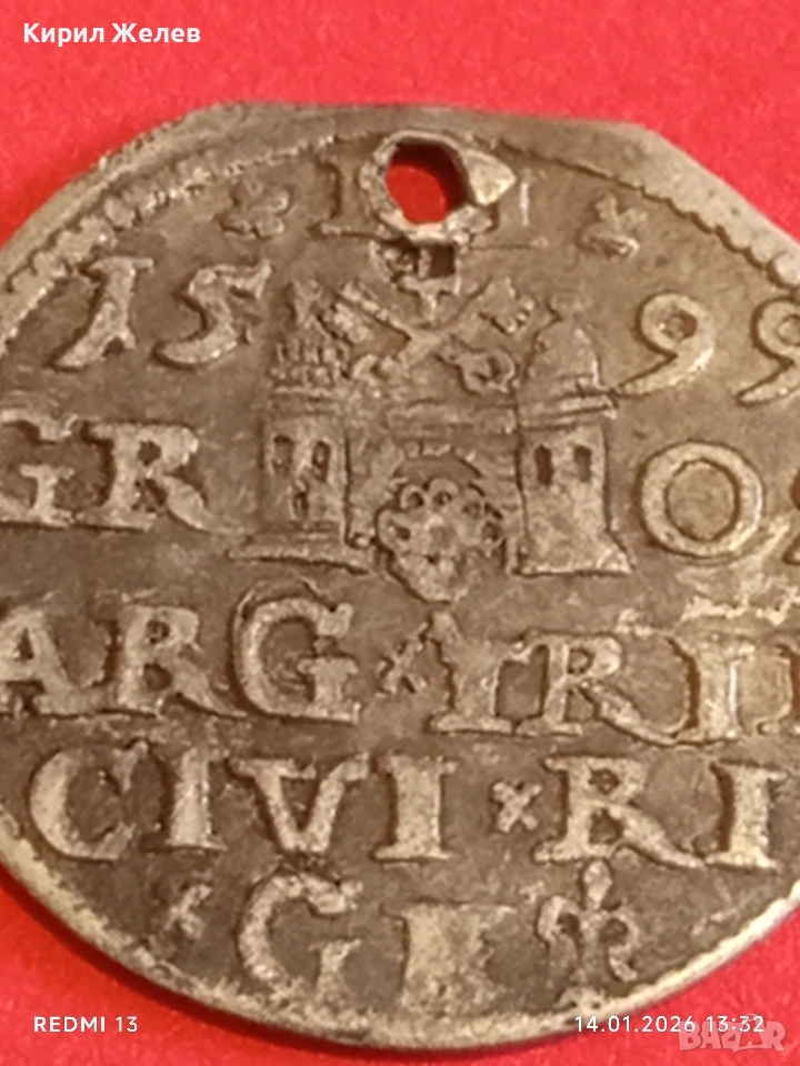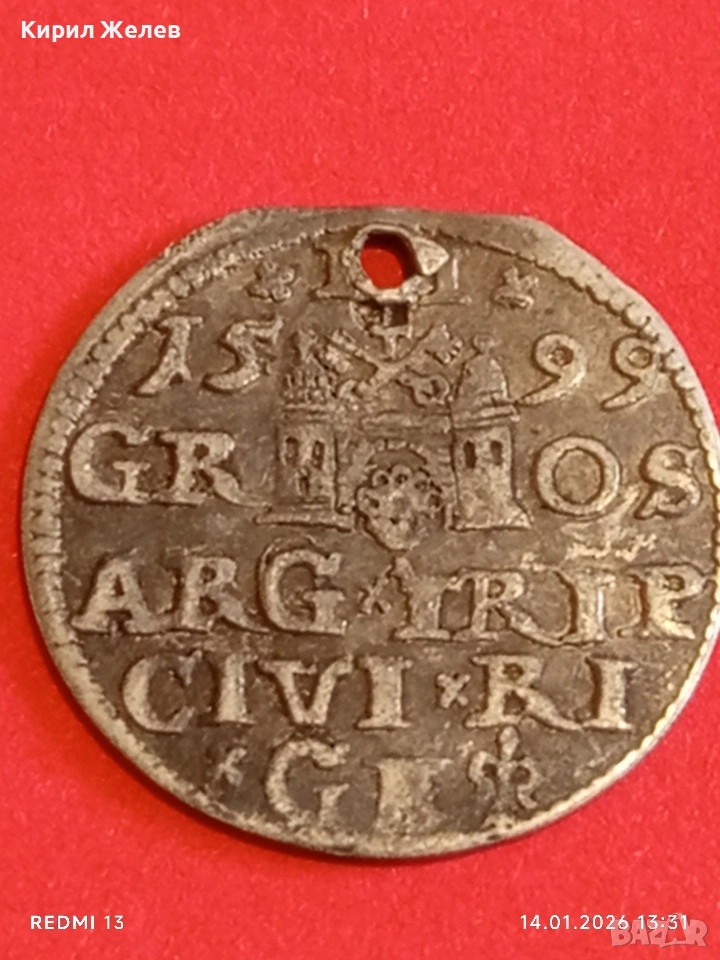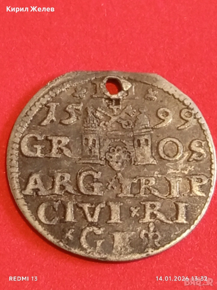 Сребърна монета 3 гроша 1599г. Сигизмунд трети Рига Ливония за КОЛЕКЦИЯ 52890 → Обява 53095816