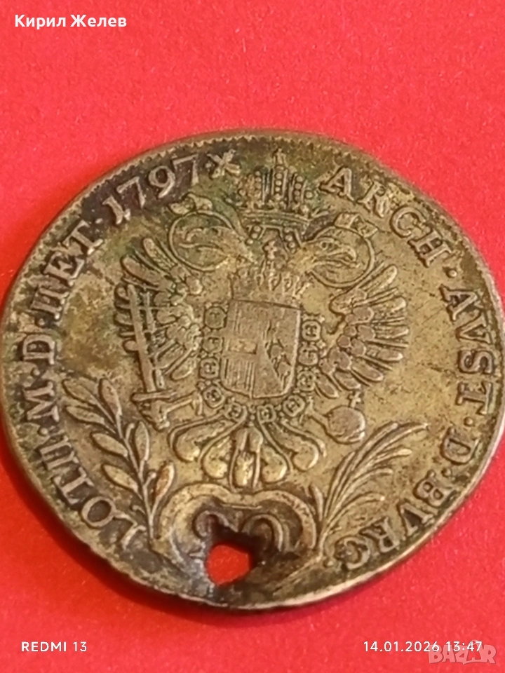 Сребърна монета 20 кройцера 1797г. Франц втори Австрия за КОЛЕКЦИЯ 52956 → Обява 53096005