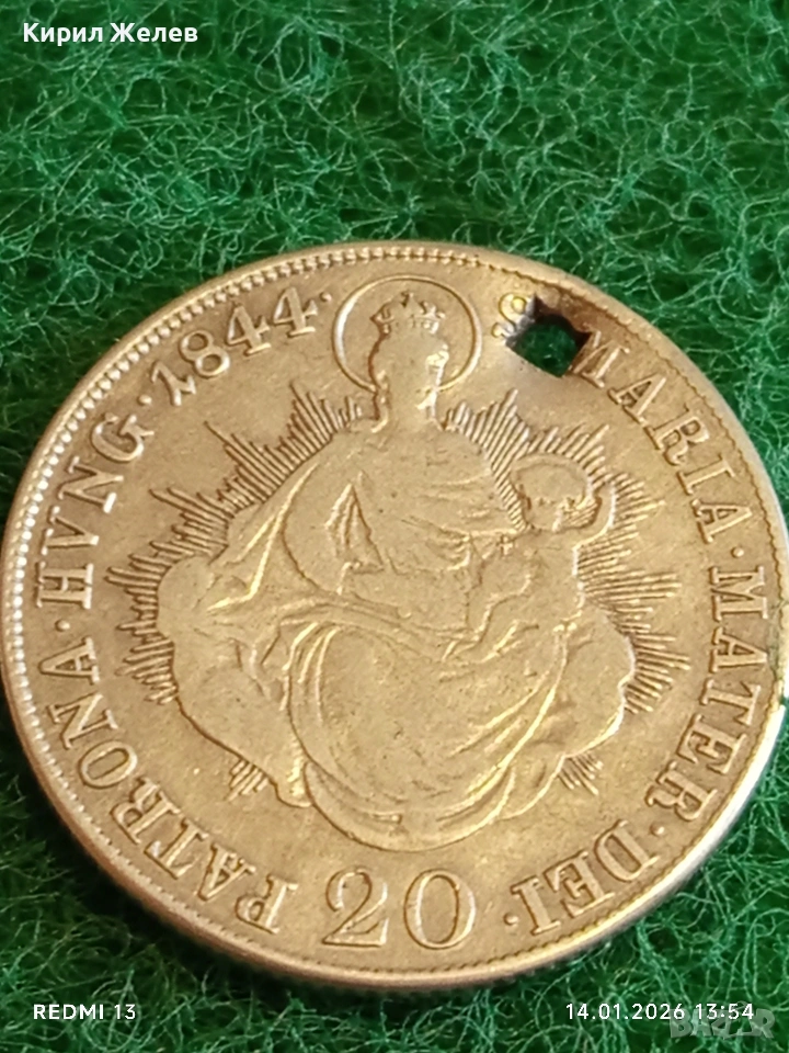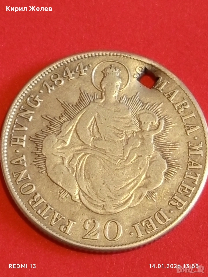 Сребърна монета 20 кройцера 1844г. Фердинанд първи Унгария Будапеща за КОЛЕКЦИЯ 52960 → Обява 53096104
