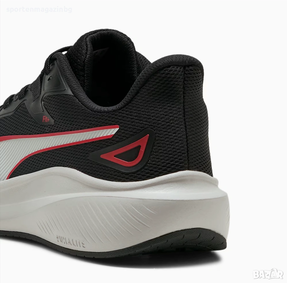 Външна част изработена от лека, мрежеста част за добра опора и естествена гъвкавост, която осигурява перфектно дишане по време на движение а синтетичните панели на повърхността увеличават здравината на маратонките. Областа, където са връзките е подсилена с TPU за дълготрайност. Допълнително подсилени в областта на петата и пръстите (отвътре). Надпис Puma Running върху езика и лого в задната част. Класическата опорна шарка PUMA Formstrip добавя стилна нотка към тези практични маратонки. Нисък профил за по-голяма свобода при движение. Вътрешната текстилна част заедно със стелката Soft Foam + осигуряват невероятна мекота и комфорт с всяка крачка. PROFOAMLITE - изключително лека EVA подметка, проектирана да омекотява приземяването и да стимулира всяка стъпка. Високопроизводителна подметка PUMA RUN за идеално прилягане по време на бягане. Гумена подметка PROTREAD по цялата дължина за издръжливост и сцепление.