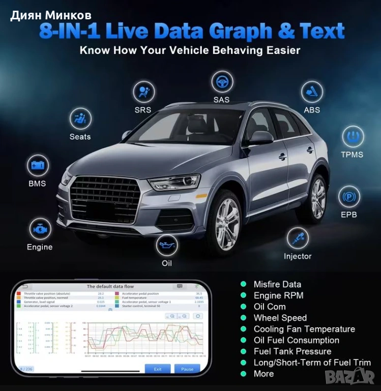 Автомобилна диагностика Xtool Anyscan A30M
