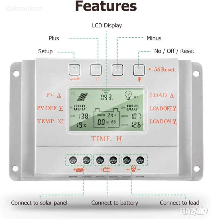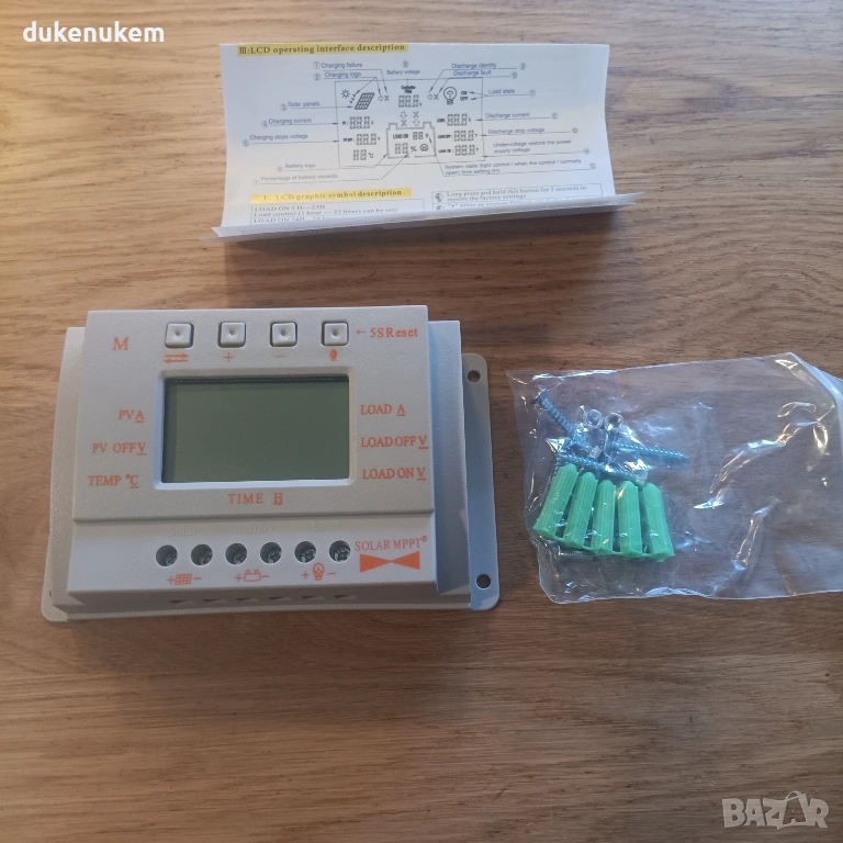 Интелигентен соларен контролер 10A, 12V/24V, PWM + MPPT