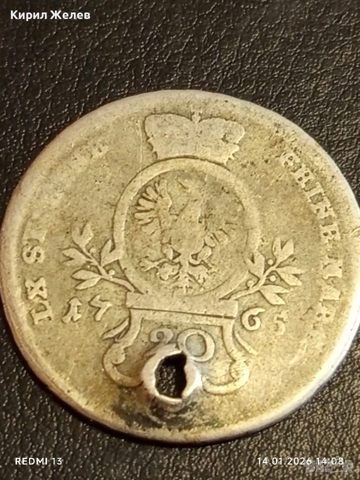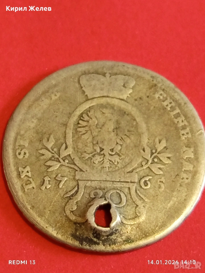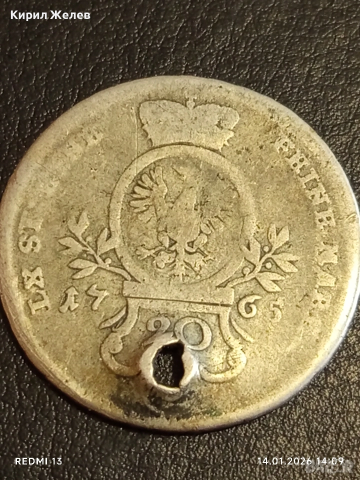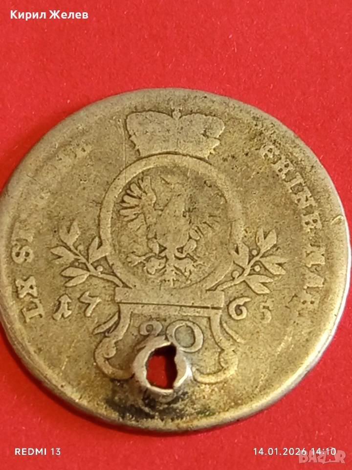 Сребърна монета 20 кройцера 1765г. Александър Вранденбург 53937 → Обява 53096339