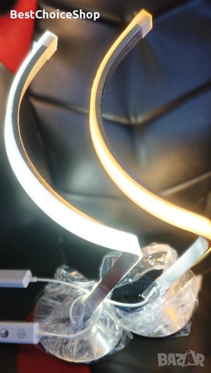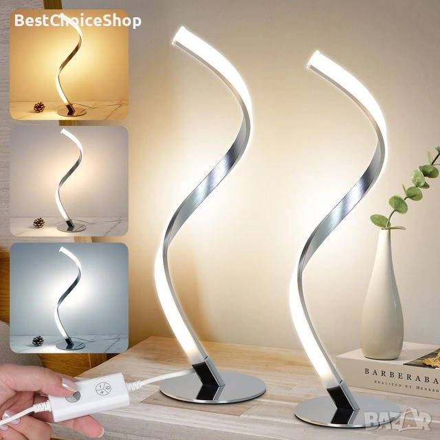 Комплект от 2 LED спирални настолни лампи с безкрайно димиране, модерна нощна лампа с сензорно управление, S-образна метална декоративна настолна лампа, 3000K-5000K (ръка/естествена/студено бяла светлина) с кабел за спалня, офис, хол