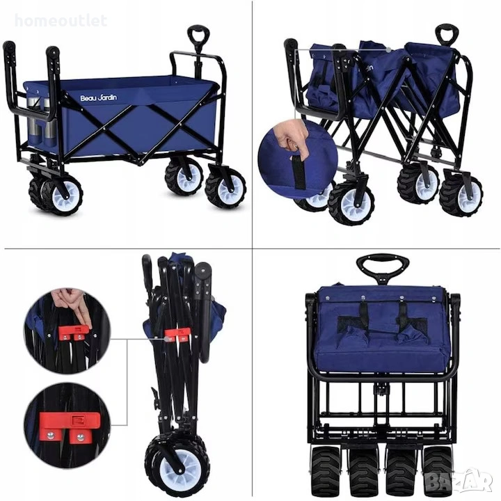 Идеална за пренасяне на покупки, семейни излети, като транспортна количка за стоки, както и за пътувания, почивки, градина, парк, къмпинг, хранителни магазини, зоопарк, спортни събития или просто за пренасяне на багаж.