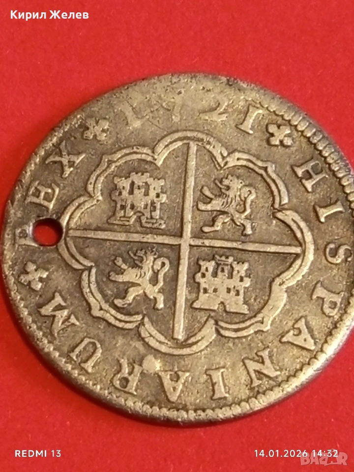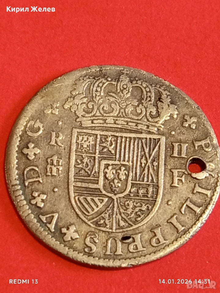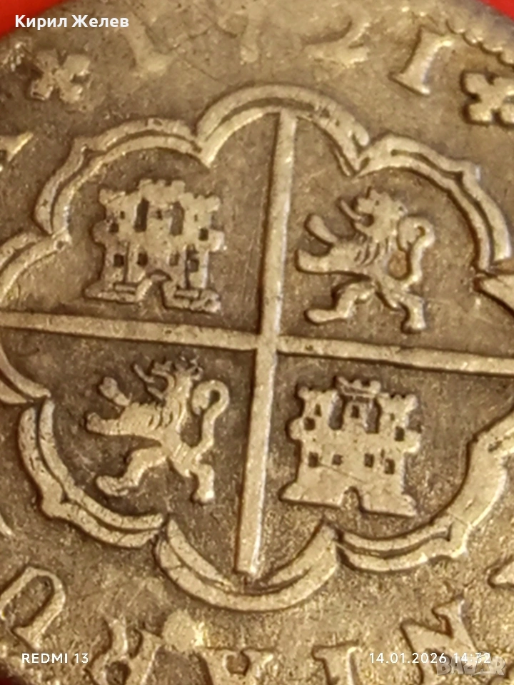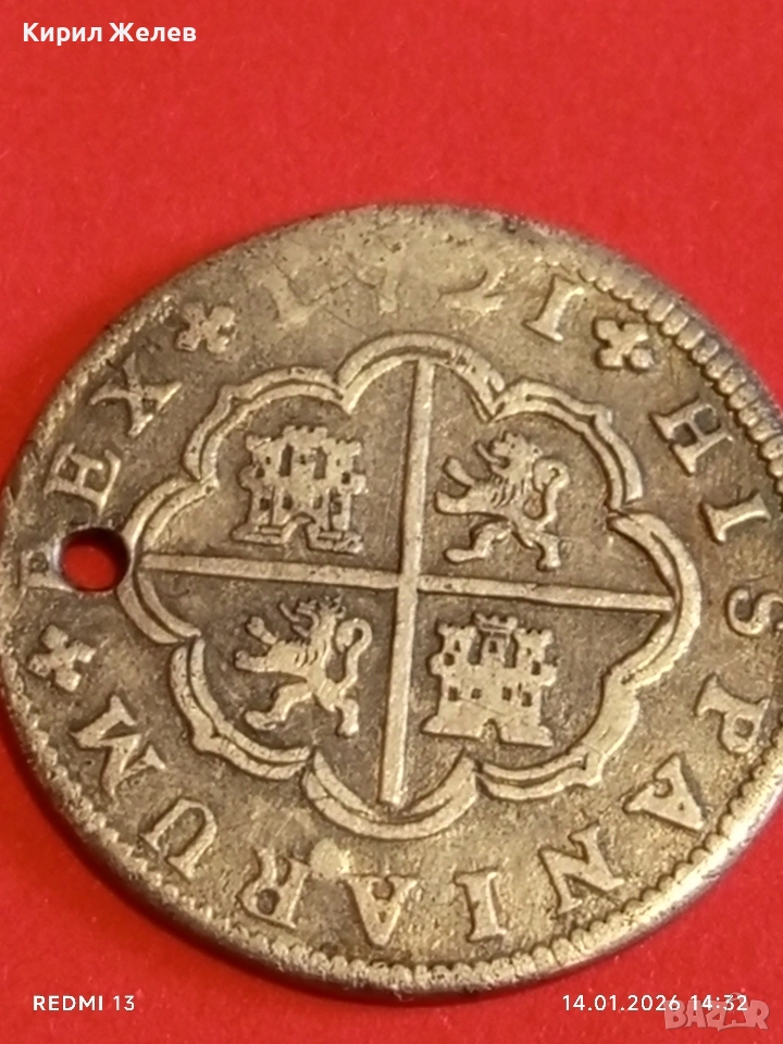 Сребърна монета 2 реала 1721г. Филип пети Сеговия Испания за КОЛЕКЦИЯ 52944 → Обява 53096708