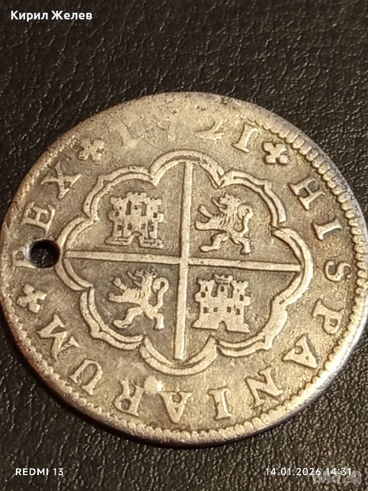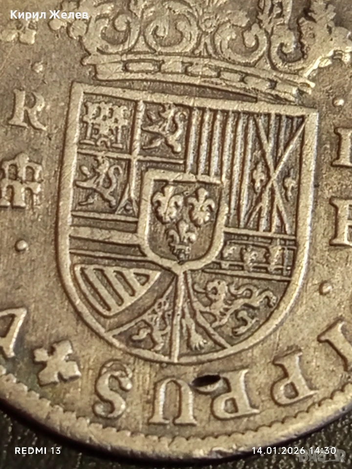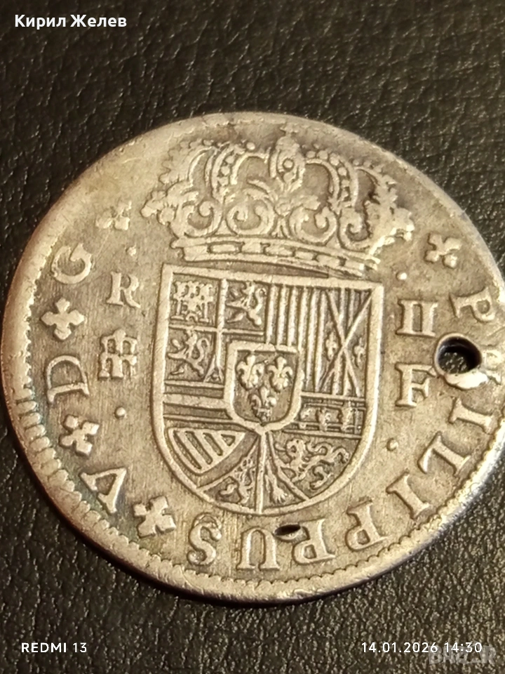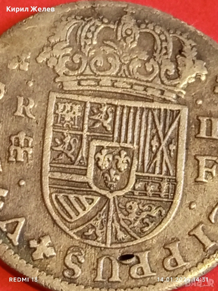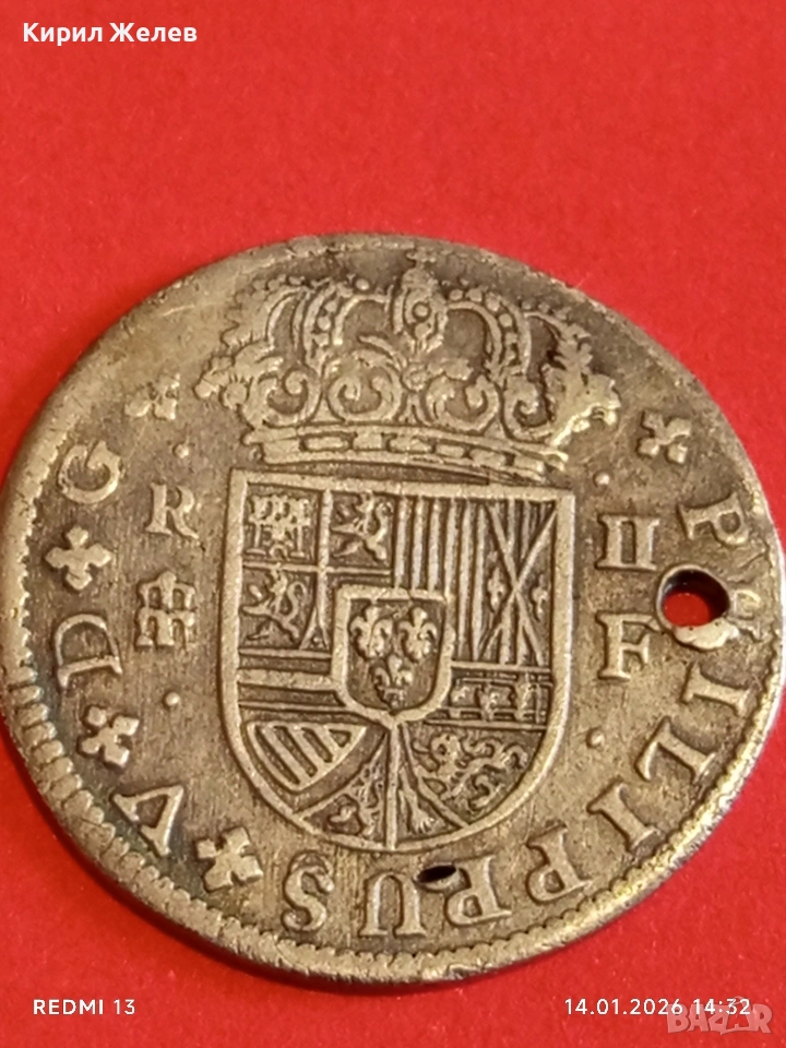 Сребърна монета 2 реала 1721г. Филип пети Сеговия Испания за КОЛЕКЦИЯ 52944 → Обява 53096708