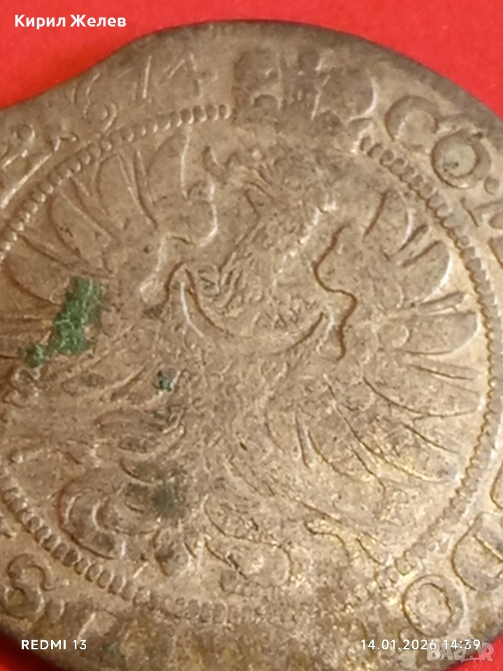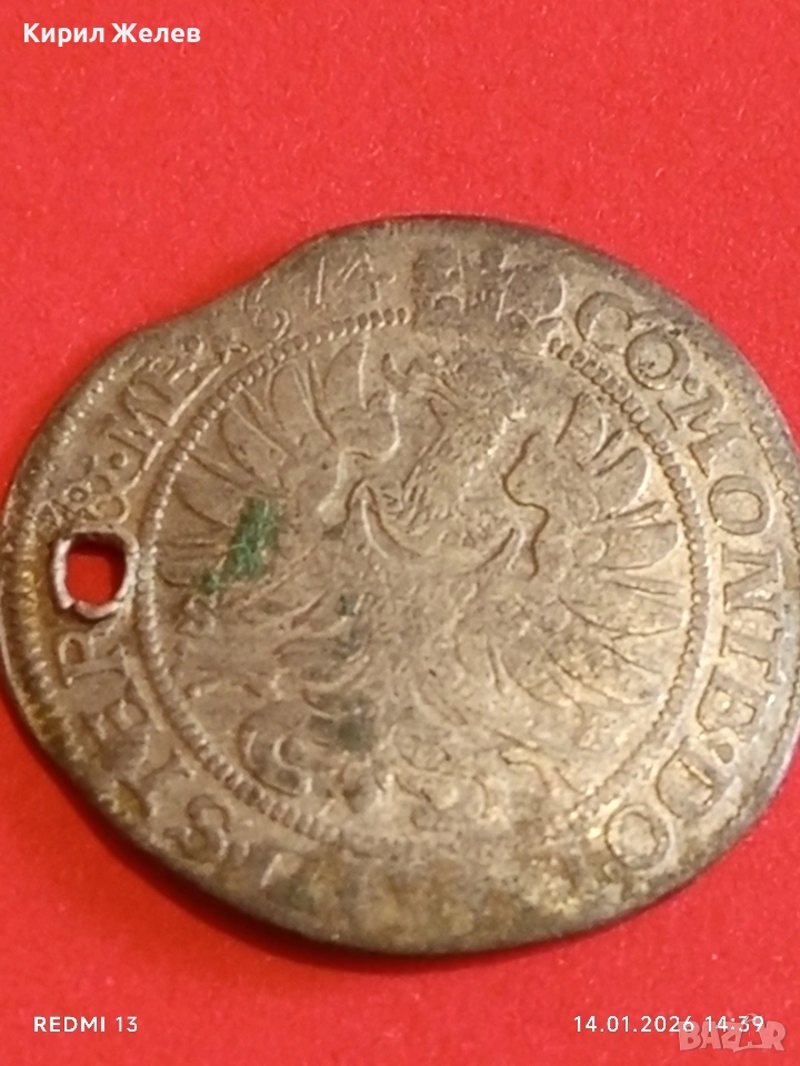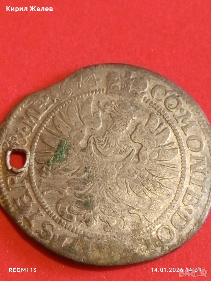 Сребърна монета 6 кройцера 1674г. Силвиус Фридрих Вюртемберг-Оле 52920 → Обява 53096792