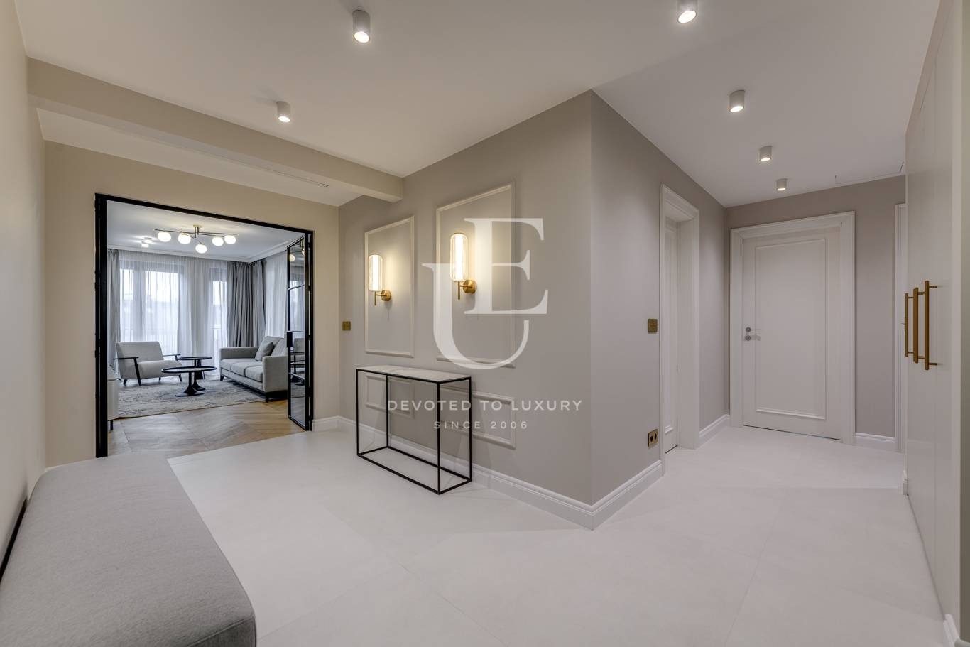Unique Estates | Christie s International Real Estate представя на Вашето внимание стилен четиристаен апартамент под наем, разположен в затворен комплекс в квартал Лозенец.