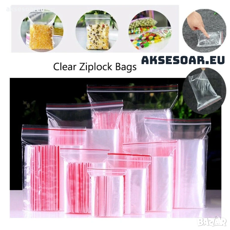 100 бр. Нови Малки найлонови торбички с цип затварящи се здрави прозрачни вакуумни