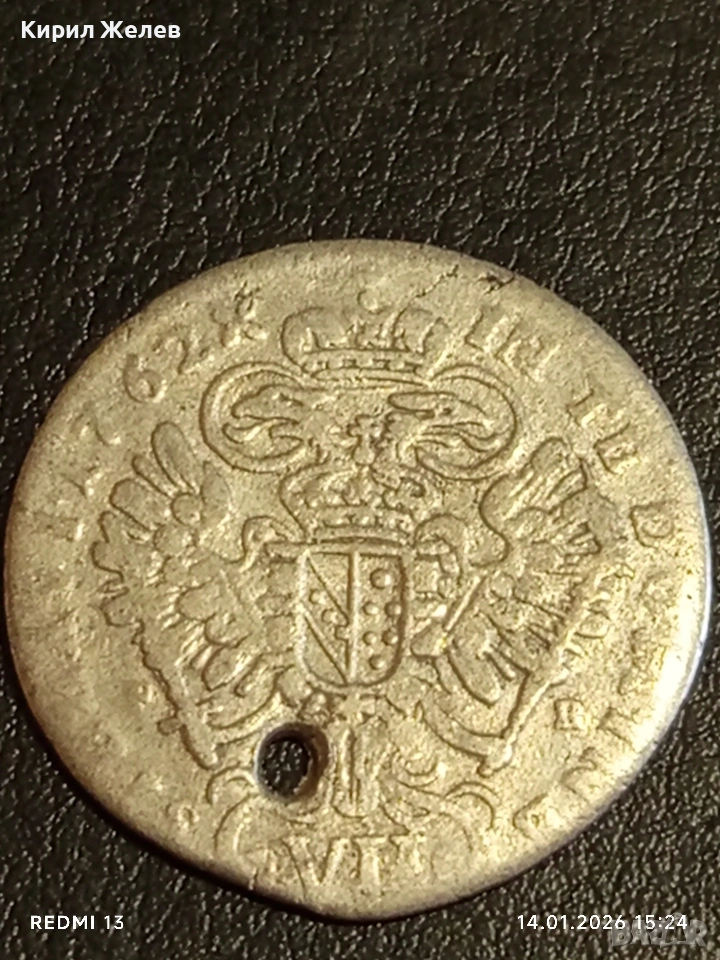 Сребърна монета 7 кройцера 1762г. Франц първи Австрия за КОЛЕКЦИЯ 52620 → Обява 53097341