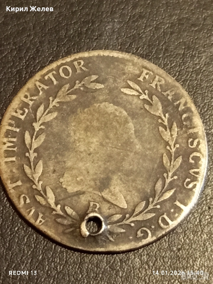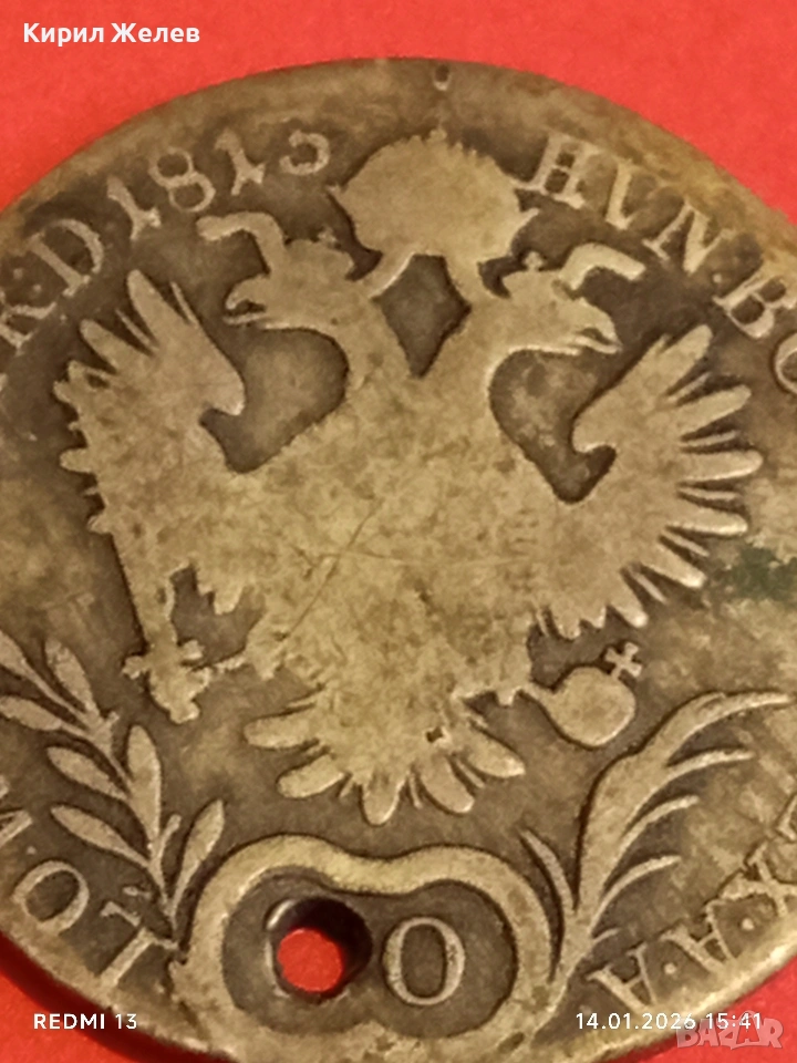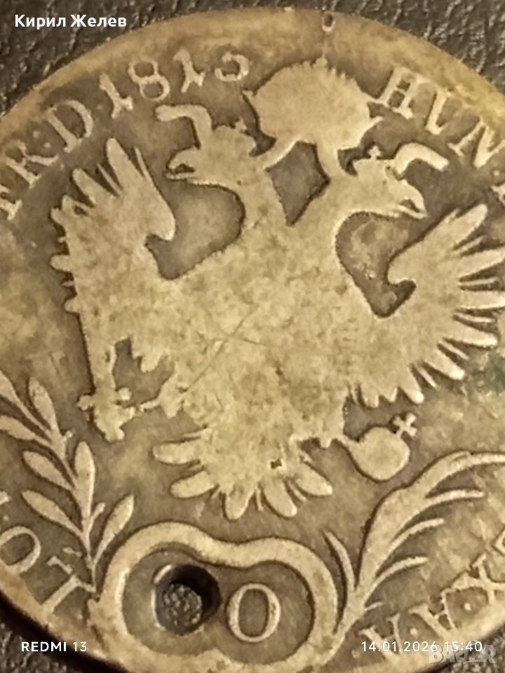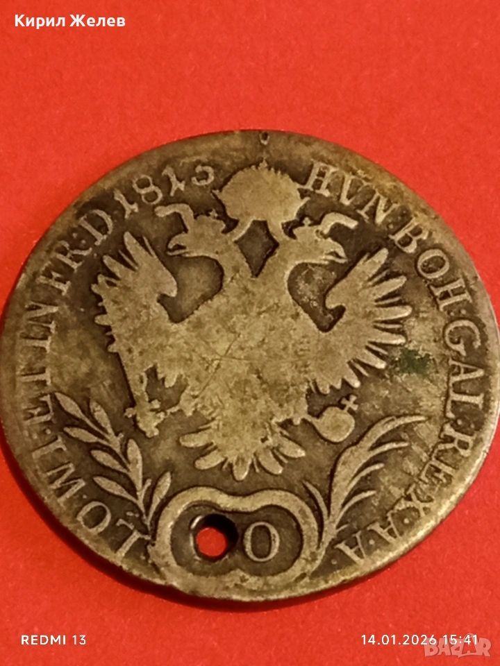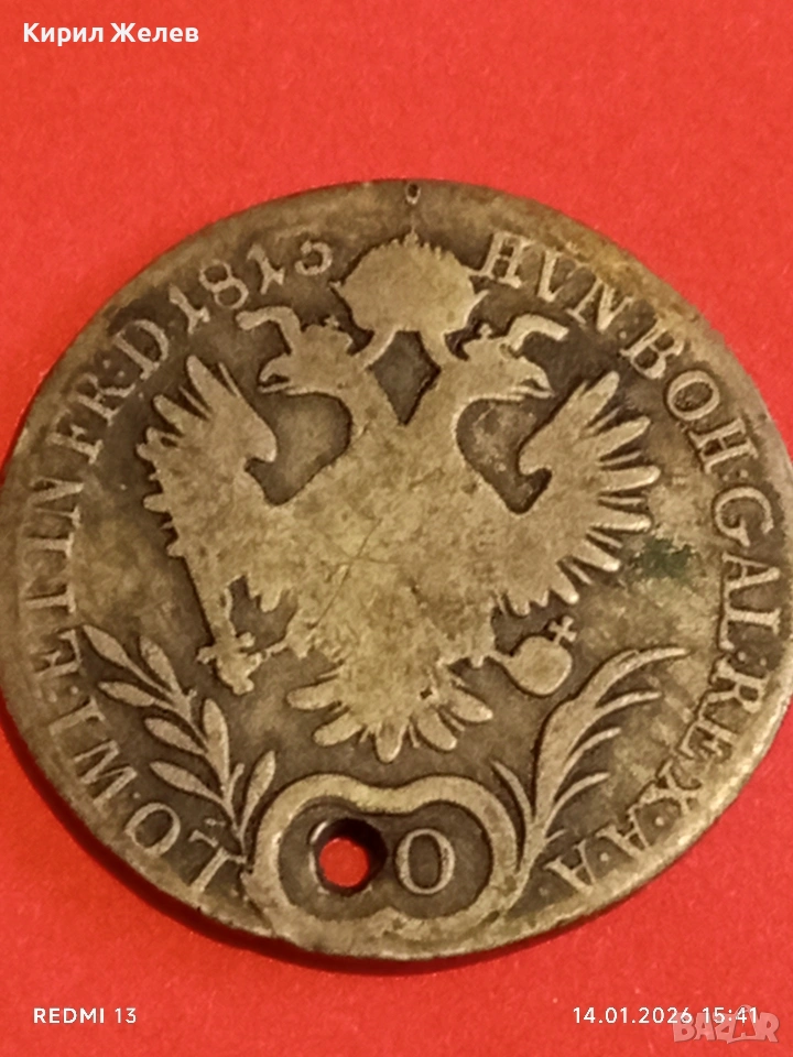 Сребърна монета 20 кройцера 1813г. Франц втори Австрия за КОЛЕКЦИЯ 52998 → Обява 53097576