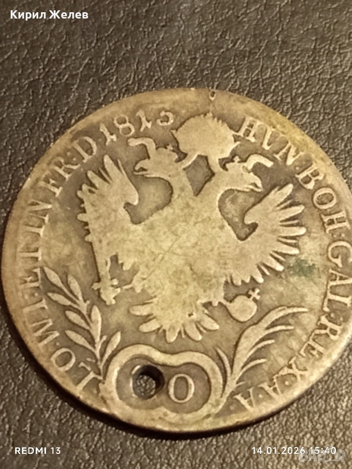 Сребърна монета 20 кройцера 1813г. Франц втори Австрия за КОЛЕКЦИЯ 52998
