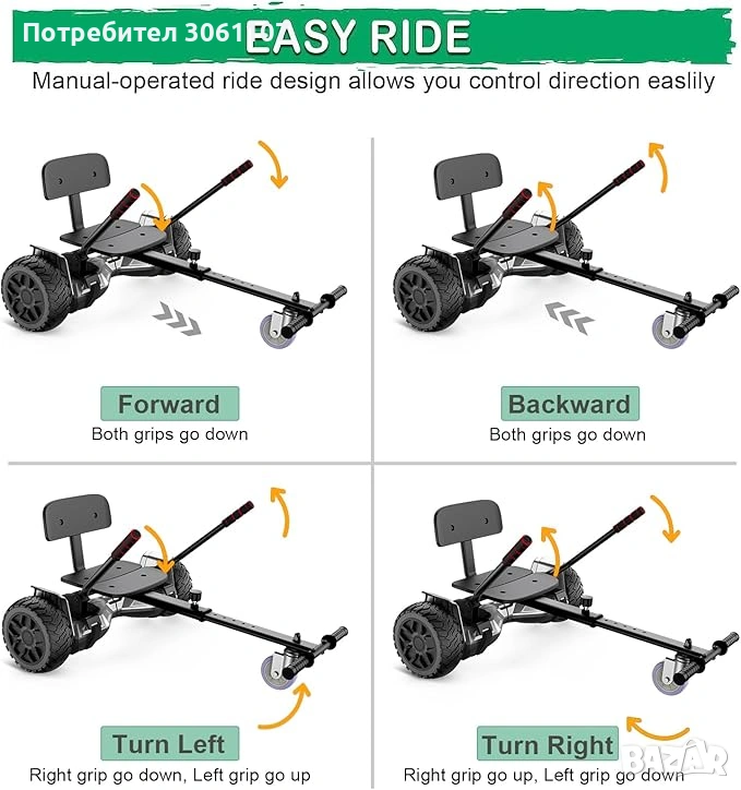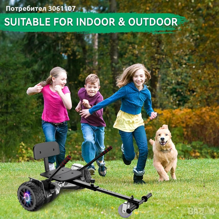 2. Ховърборд със седалка: Ховърбордът SISIGAD с нашите приставки за ховърборд е перфектно допълнение, което осигурява безопасно и уютно забавление при шофиране.