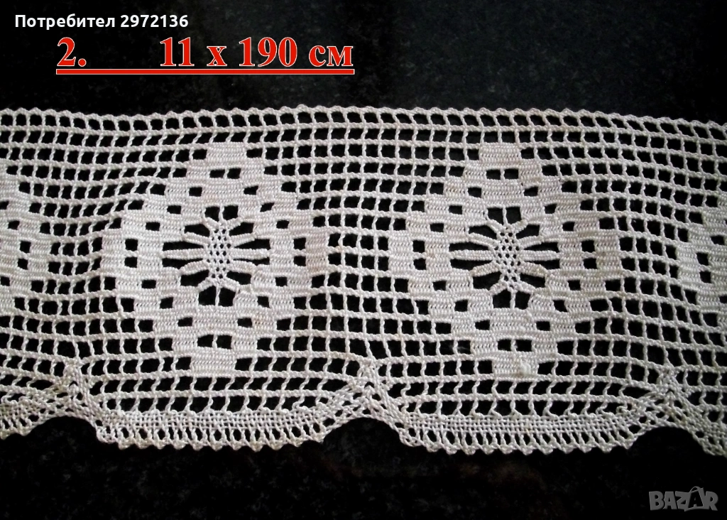 2. Дантела, памук, цвят екрю, ширина 11 см, дължина 190 см, цена 17 €;