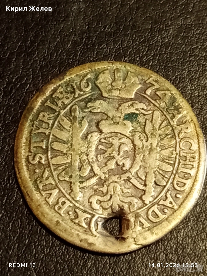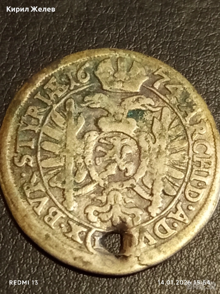 Сребърна монета 6 кройцера 1674г. Леополд първи Прага Бохемия за КОЛЕКЦИЯ 52571 → Обява 53097781