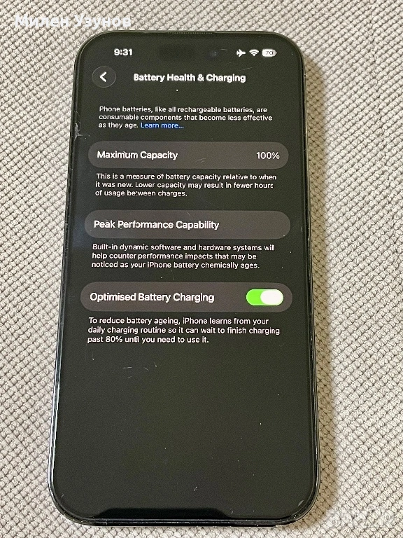 Батерията е сменена с оригинална, показва си процентите както трябва и няма никакви грешки.
