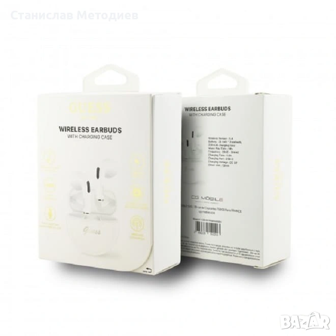 Безжични слушалки GUESS TWS SMALL ROUND SCRIPT PRINT са изработени от висококачествени материали. Страхотно качество на звука при слушане на музика и разговори. Bluetooth връзката е ниска консумация на енергия. Слушалките създават страхотно 360 градусово стерео усещане и произвеждат силен и качествен бас. Всяка една от слушалките притежава сензорно управление. В комплекта включва преносима станция за зареждане.