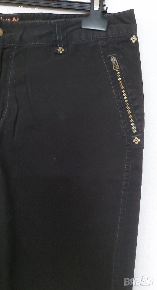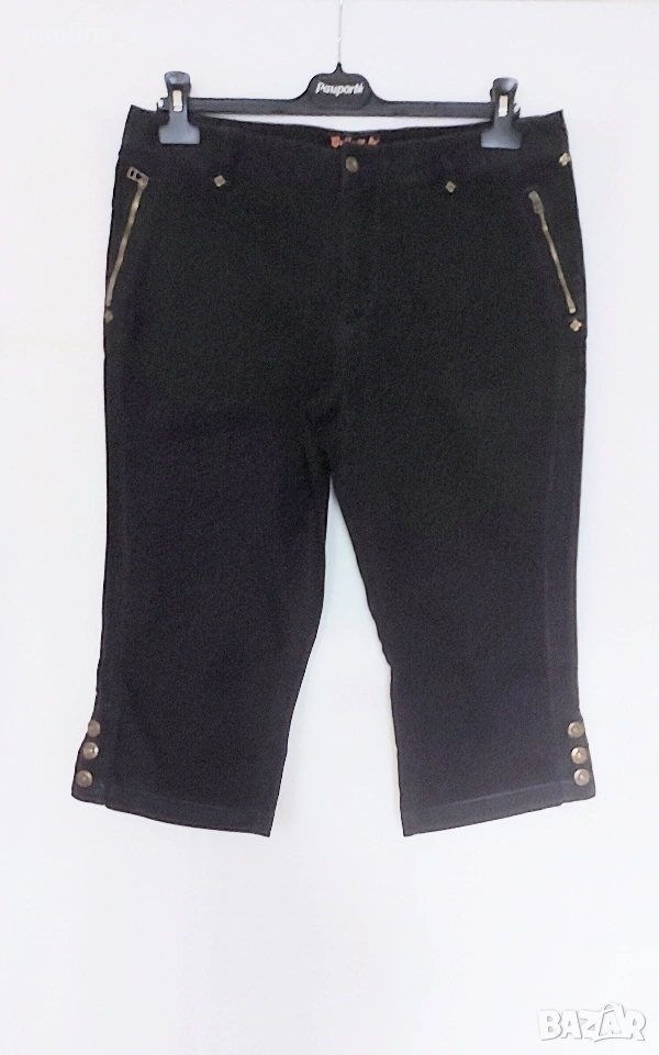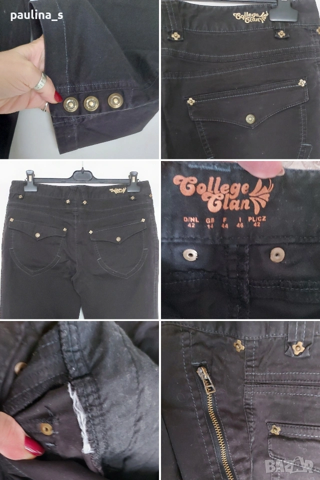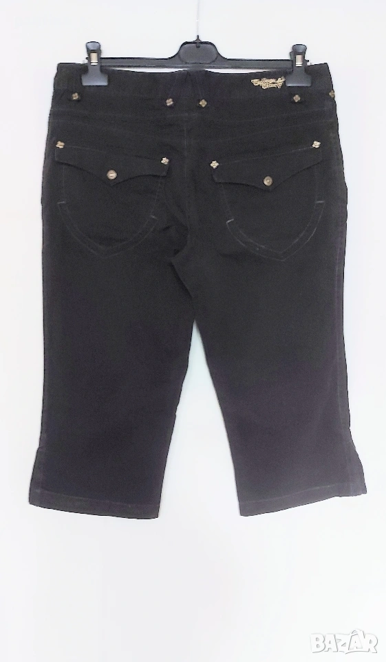 3️⃣. L / XL - Черни дънкови бермуди "College Clan". Цената е крайна, без пазарлъци 15 евро. Еластична материя, платът има велурен и матиращ ефект, изключително приятен при допир с кожата, памук и еластан. Контрастни тегели, фиксирано коляно, 3 копчета на крачолите. Копчетата, кабсите и циповете са оксидирани и брандирани. Без дефекти, една бройка.