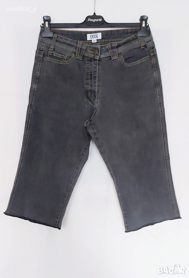 1️⃣. M / XL - "Cecil". Цената е крайна, без пазарлъци 9 евро. Еластични дънкови бермуди в черно с избелващ ефект. Моделът е 5 pocket Denim standard. Качеството е гарантирано от бранда. Без дефекти и етикет, с изнищени крачоли.