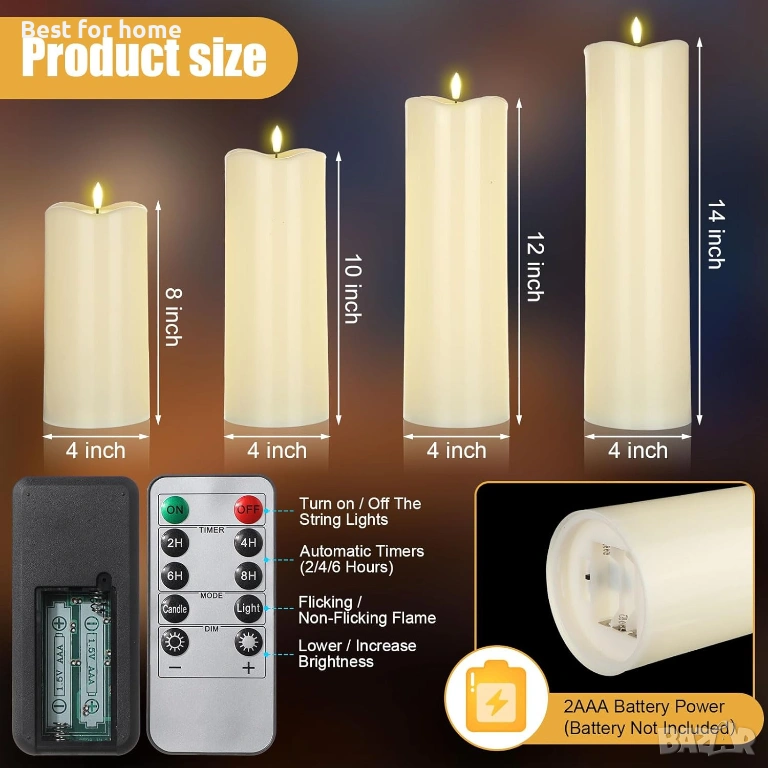 Дълъг живот на батерията: Всяка свещ е оборудвана с високоефективна батерия, осигуряваща десетки часове непрекъснато светене.