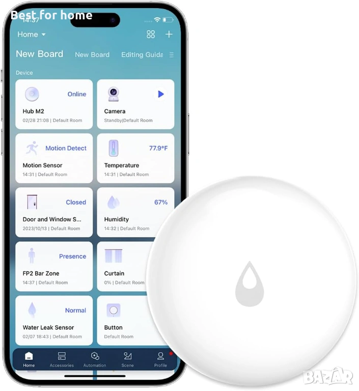 Автоматизация на дома: Можете да настроите сценарии – например, ако бъде засечен теч, умният клапан на Aqara (продава се отделно) автоматично да спре централното водоподаване.
