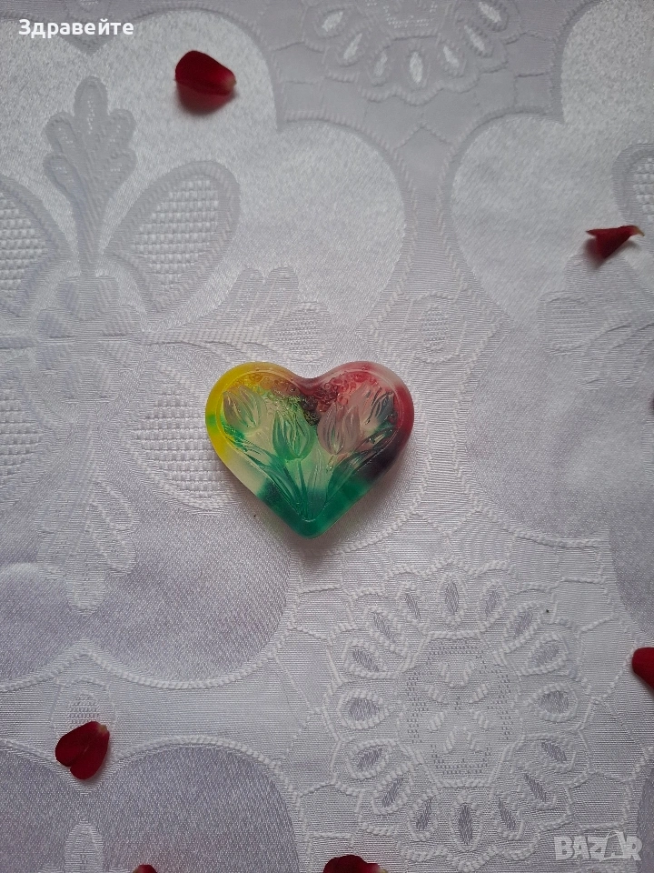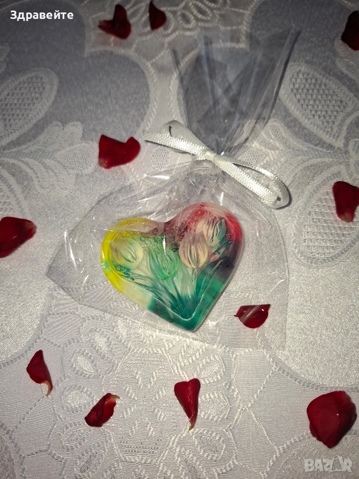 Глицеринов сапун с форма на сърце, с аромат на цветя и чистота → Обява 53098559