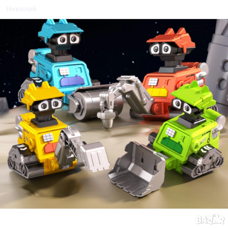 Подвижен робот играчка с дизайн на строителна машина, различни цветове → Обява 53098614