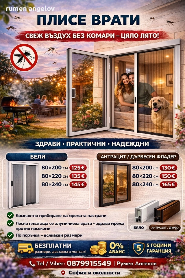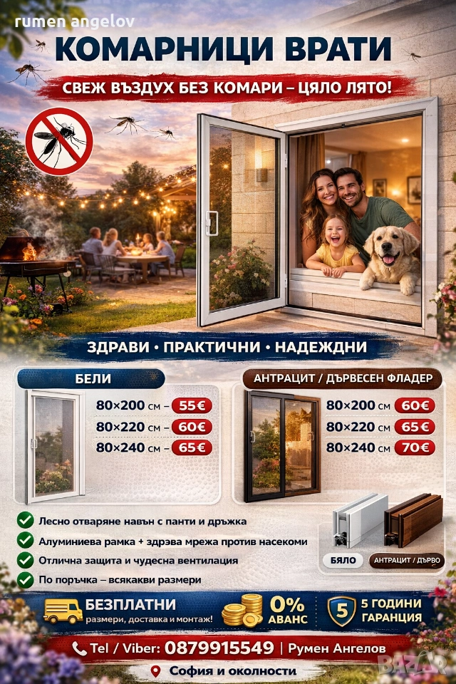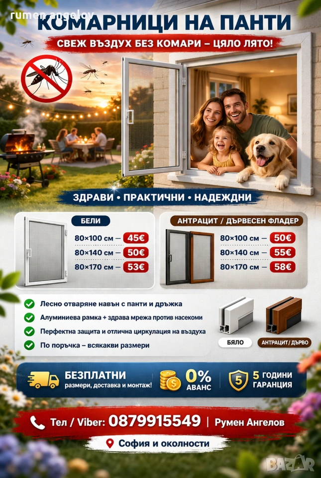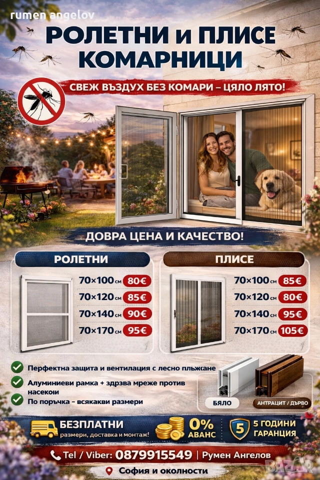 Комарници с размери, доставка и монтаж. Без аванс и 5 години гаранция