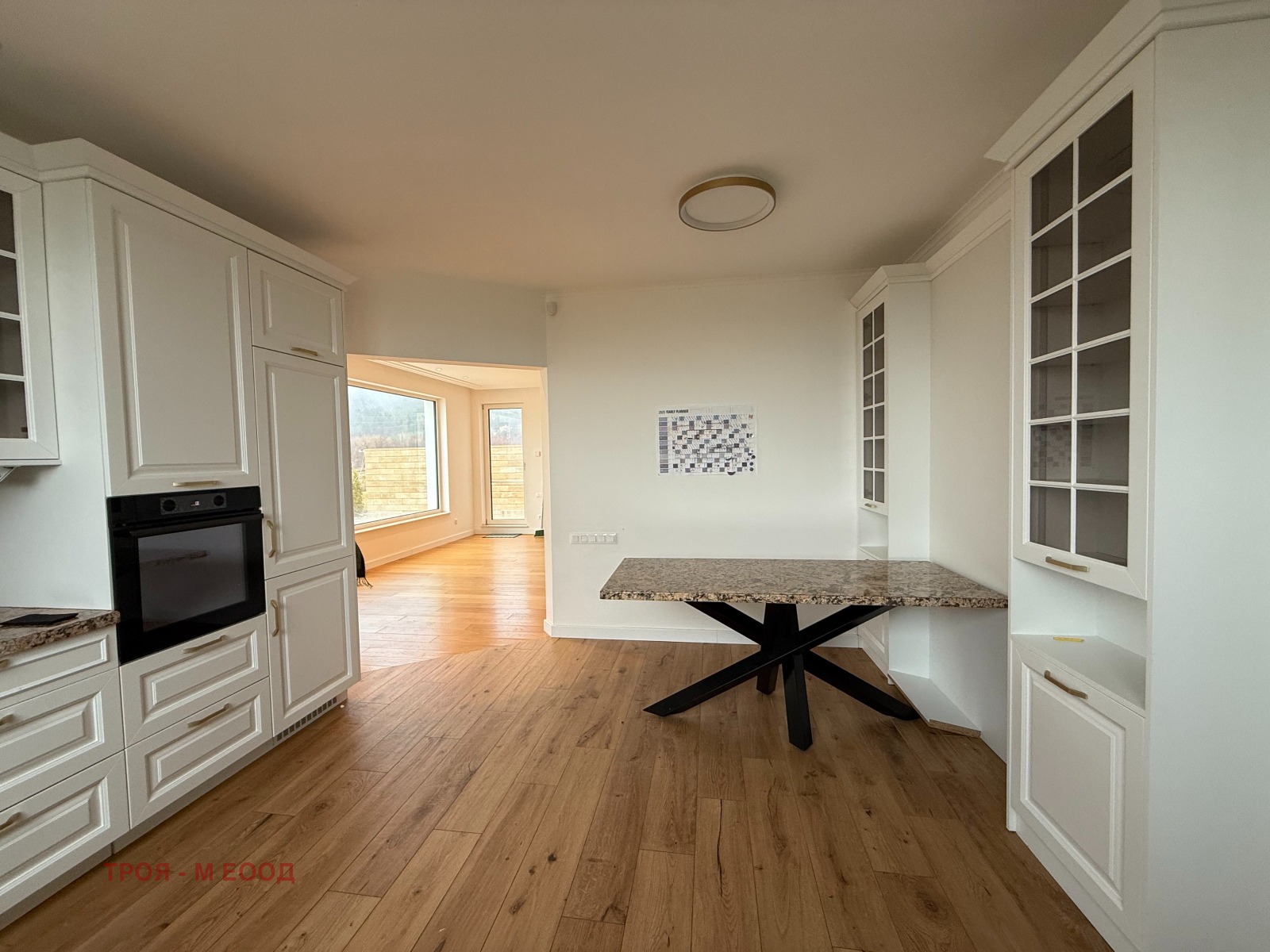 Предлагаме Ви прекрасна къща под наем в с. Бистрица с прекрасни панорамни гледки, просторни помещения, частично обзавеждане от висок клас. На първия етаж имотът разполага с голям светъл хол с трапезария, напълно оборудвана кухня с висок клас електроуреди, холандска газова камина,създаваща уют и елегантна атмосфера; спалня и допълнителна стая,баня с тоалетна и отделно мокро помещение.Излаз към прекрасен озеленен двор.