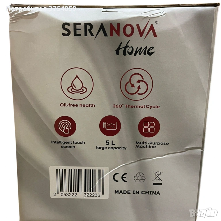 Фритюрник с горещ въздух (Air Fryer) Seranova, 5L, 2000W, Дигитален сензорен дисплей