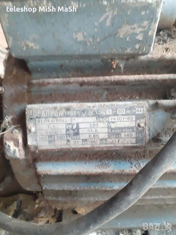два Ел мотора трифазни със стойка с вал за шмиргел → Обява 53098870