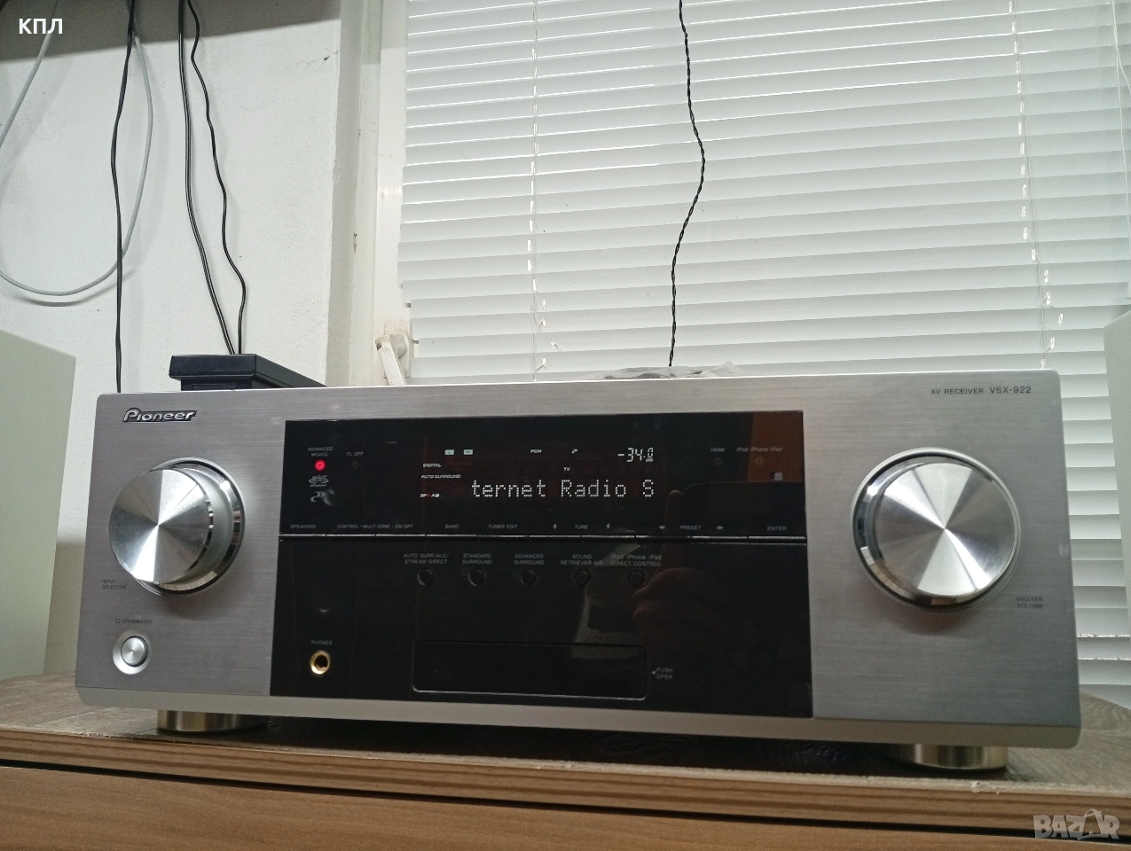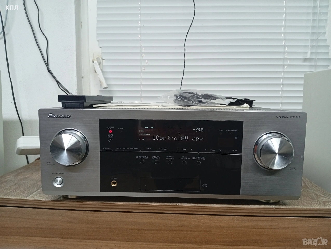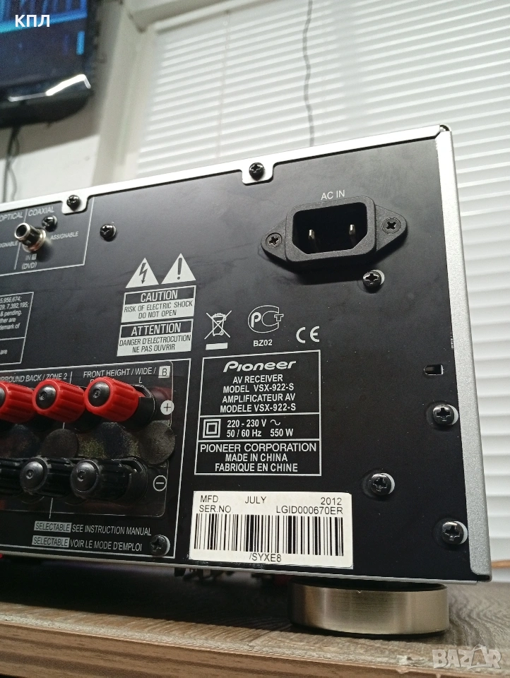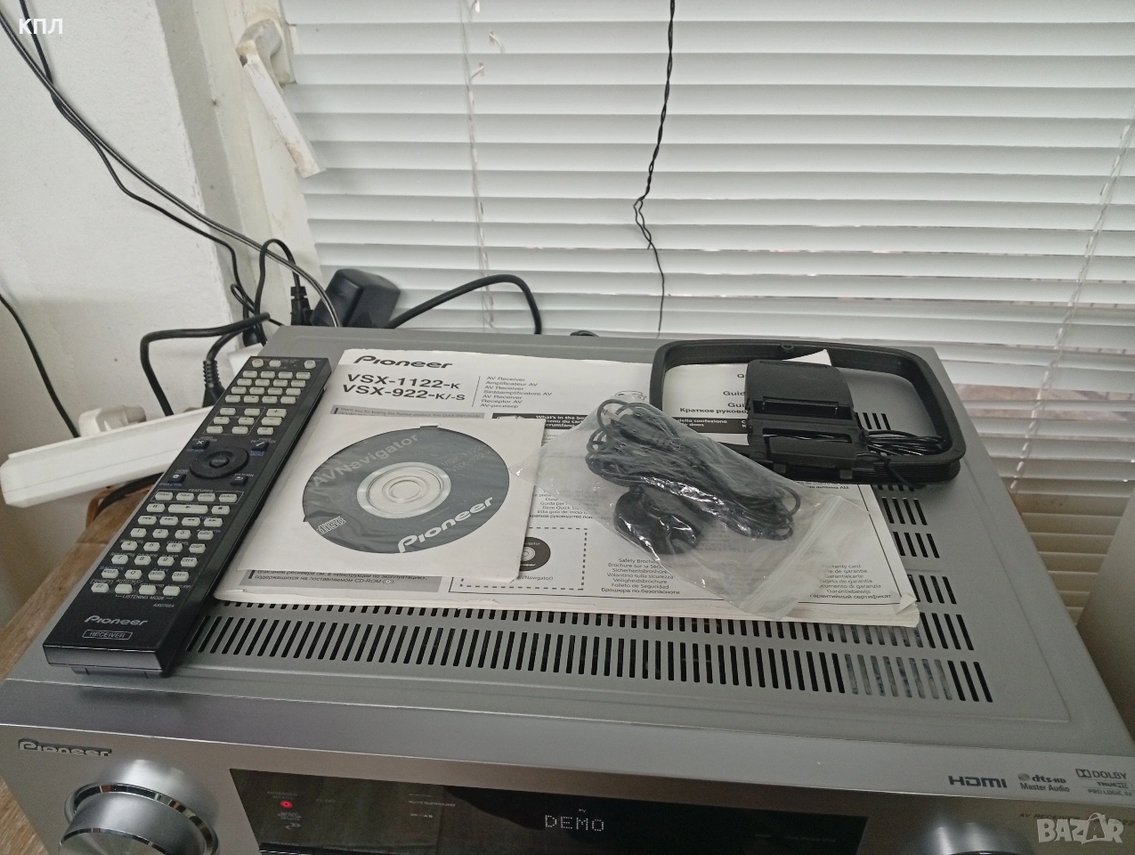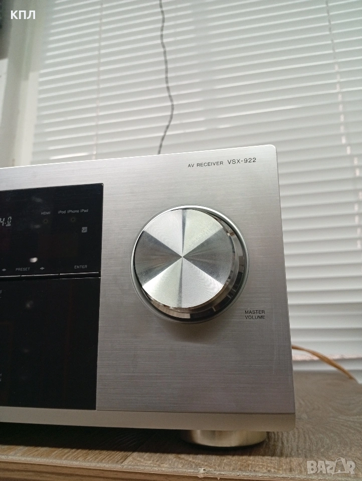 Pioneer VSX-922 с кашон , дистанционно, микрофон за калибриране 7.2-канален AV мрежов ресивър за домашно кино, който поддържа HD съраунд звук, 3D съвместимост и мрежови функции като AirPlay и DLNA. Основни характеристики Pioneer VSX-922 (VSX922) е проектиран да бъде център на система за домашно забавление, предлагайки широк набор от функции за свързване и обработка на аудио/видео съдържание. Аудио формати: Поддържа декодиране на висококачествени аудио формати, включително Dolby TrueHD и DTS-HD Master Audio, както и Dolby Pro Logic IIz, DTS-ES и DTS Neo:6d. Свързаност: Разполага с 6 HDMI входа и 1 изход (HDMI 1.4a), които са съвместими с 3D съдържание. Включва също преден USB порт за директна връзка с iPod, iPhone или iPad. Мрежови функции: Предлага възможности за AirPlay, интернет радио и DLNA 1.5 стрийминг. Безжичните Bluetooth и WLAN функции са налични с допълнителни (опционални) адаптери (AS-BT200 и AS-WL300). Калибриране на високоговорителите: Включва интелигентна система за калибриране на високоговорителите (Advanced MCACC), която помага за оптимизиране на звука според акустиката на помещението. Мощност: Максималната изходна мощност е 7 x 150 вата (при 1 kHz, 6 ома).