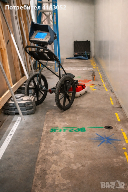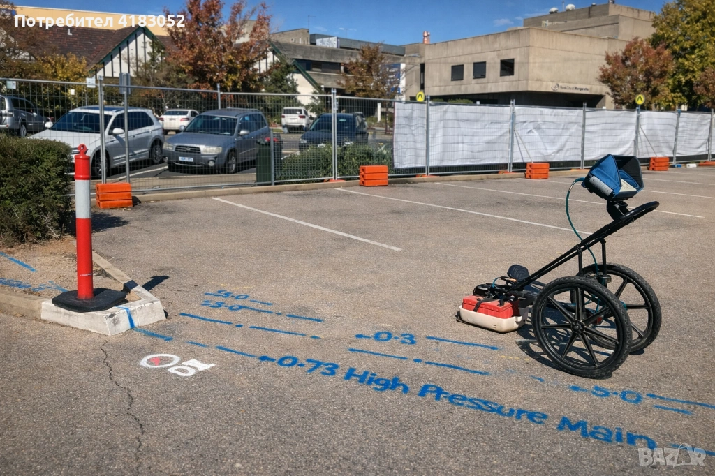 Работя с професионален георадар с висока резолюция, подходящ за градска среда, строителни площадки, терени преди изкопни работи и др.