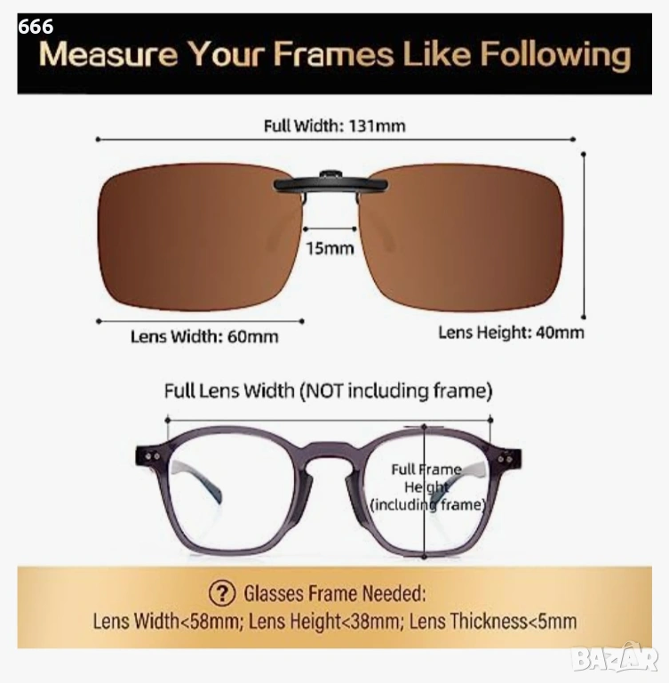 Goiteia - Поляризирани слънчеви очила с клипс върху диоптрични очила за мъже и жени