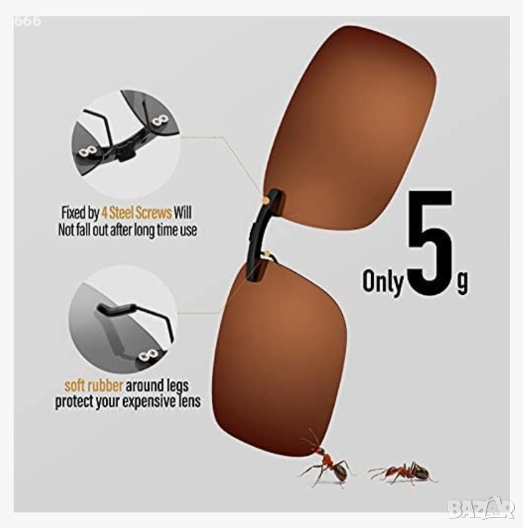 Този чифт слънчеви очила с клипсове се отличава с лек дизайн, който осигурява изключително комфортно носене. Можете да ги носите продължително време без дискомфорт или умора, независимо дали сте на открито или се занимавате с ежедневните си дейности. Те без усилие задоволяват вашите нужди от очила, без да добавят допълнително тегло.