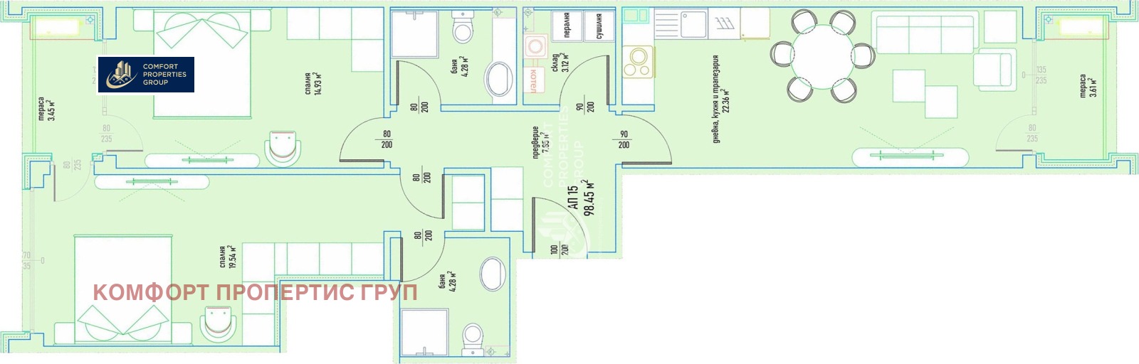 Баня с тоалетна 4.28 кв.м