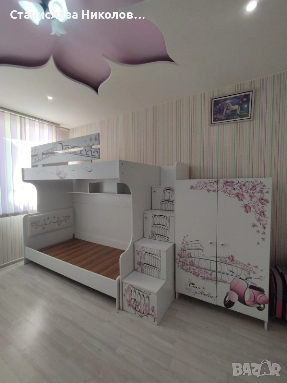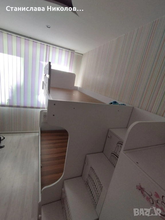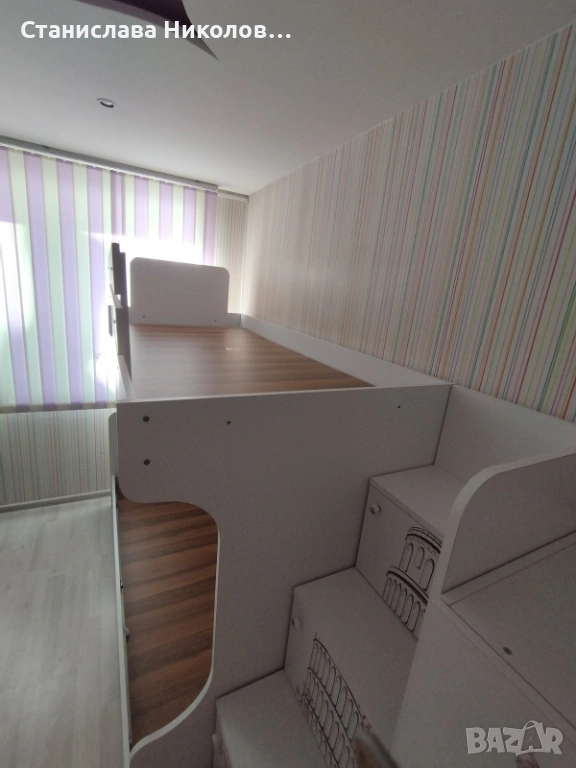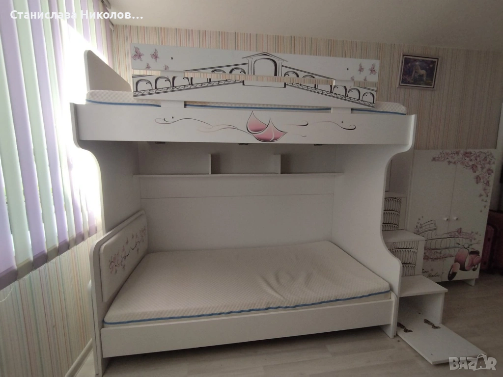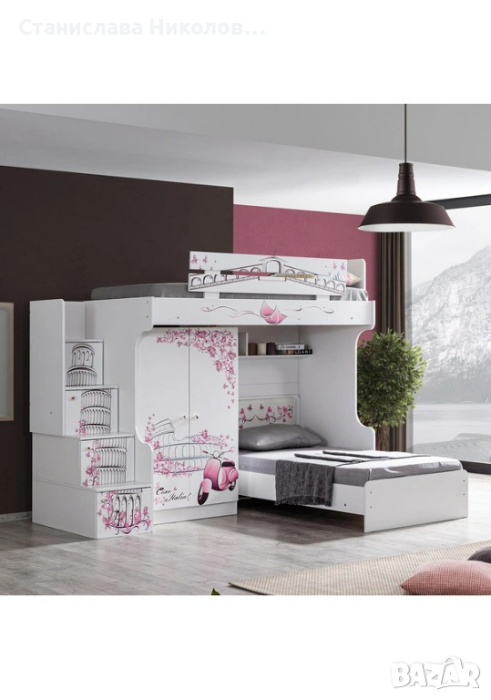 * Двуетажното легло има стълба. Стълбата може да се постави отдясно или отляво.