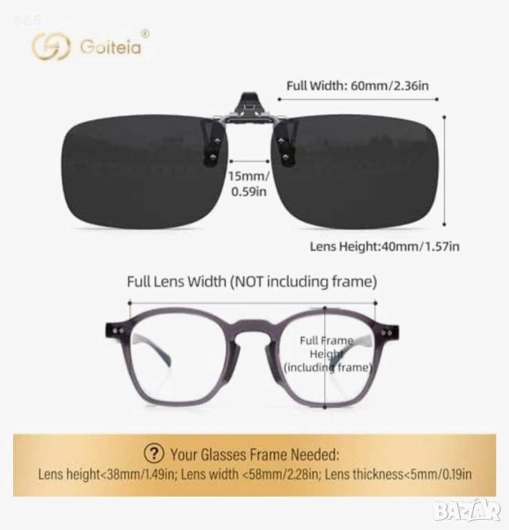 Goiteia - Поляризирани слънчеви очила с клипс върху диоптрични очила за мъже и жени