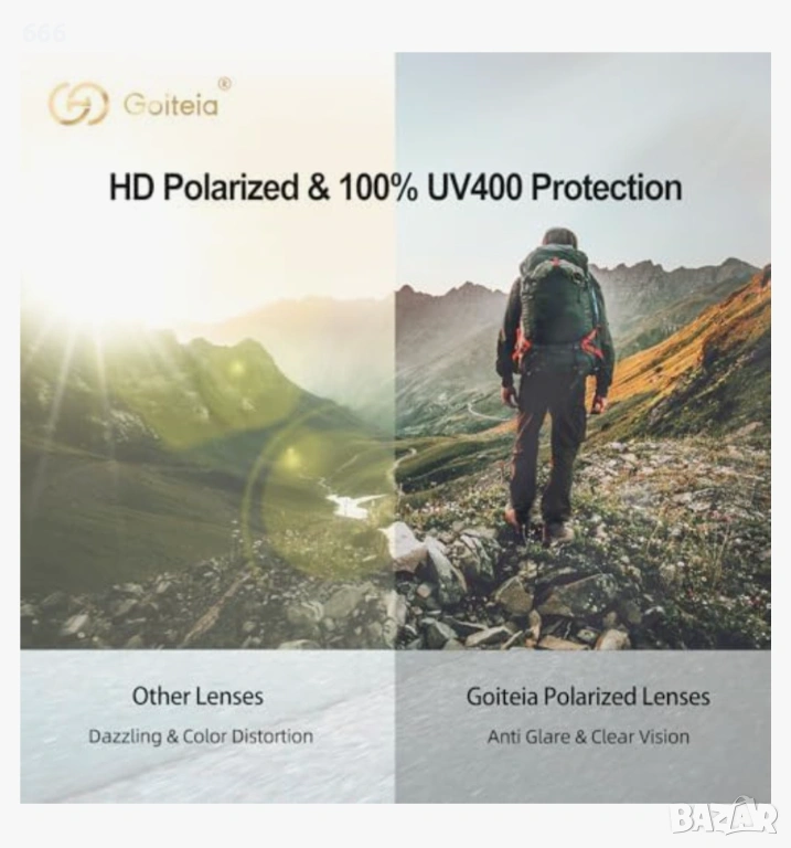 👉【HD поляризирани и 100% UV400 защита】: Поляризираните лещи Goiteia TAC предотвратяват излагането на очите както на UVA, така и на UVB лъчи и елиминират отразената светлина и разсеяната светлина.